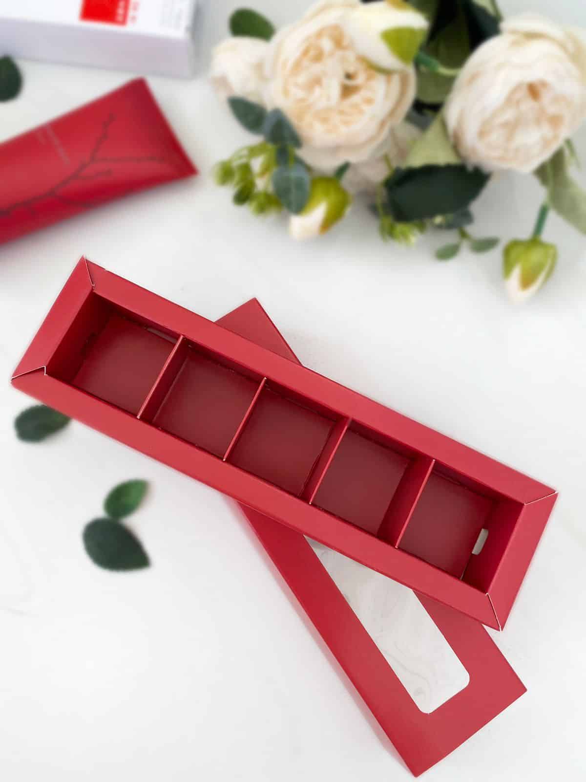 Упаковка под 5 конфет с тонкими разделителями, красный