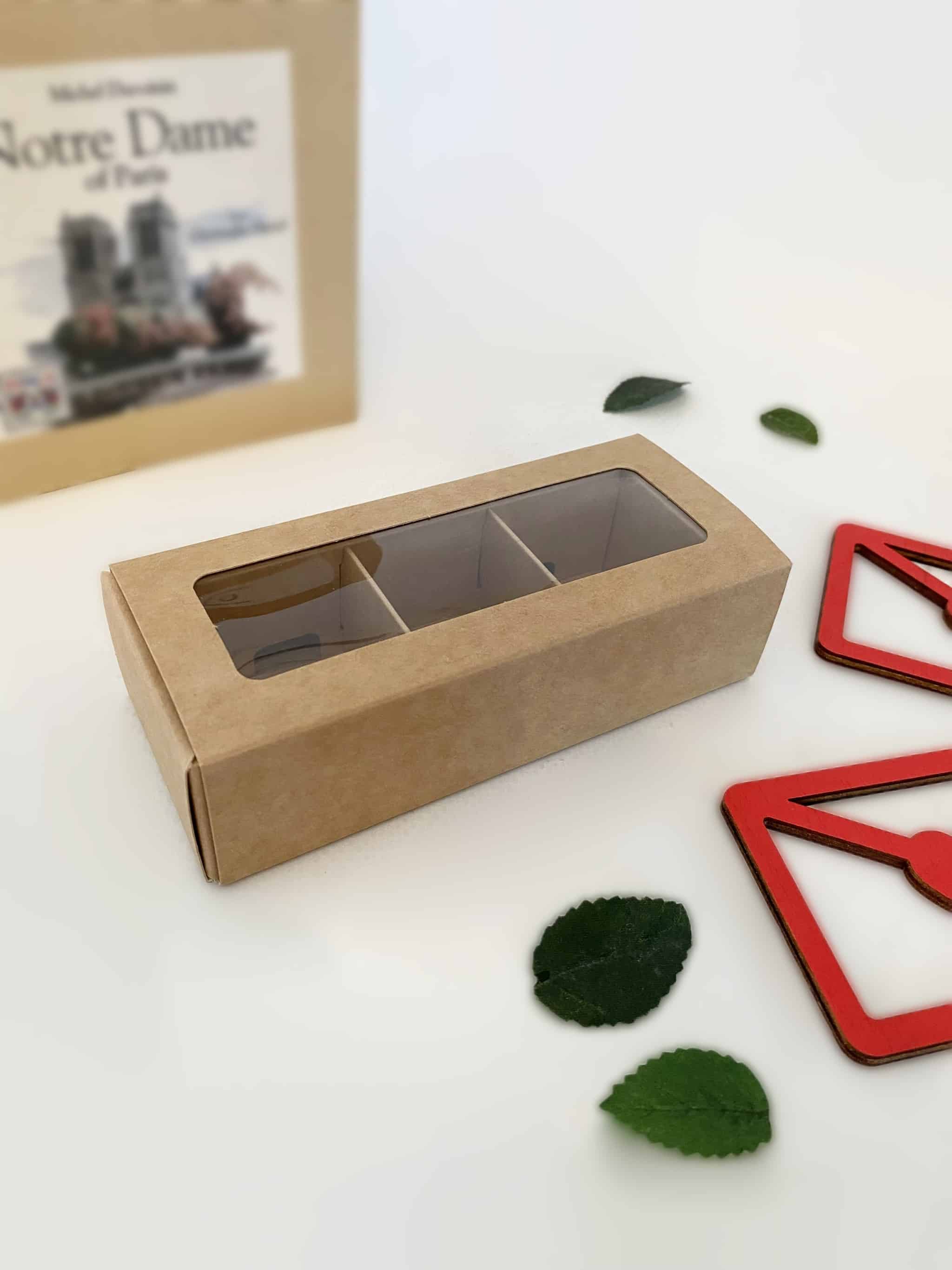 Упаковка под 3 конфеты с тонкими разделителями, крафт