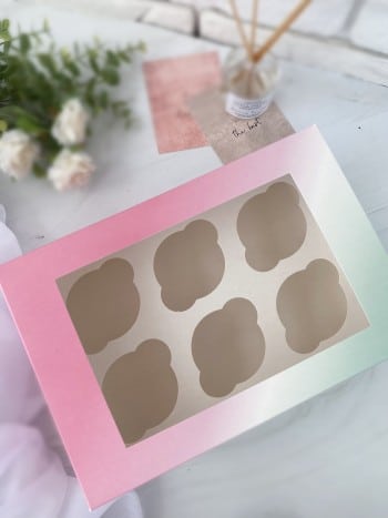 Упаковка под 6 капкейков с окном, розово-зеленый градиент