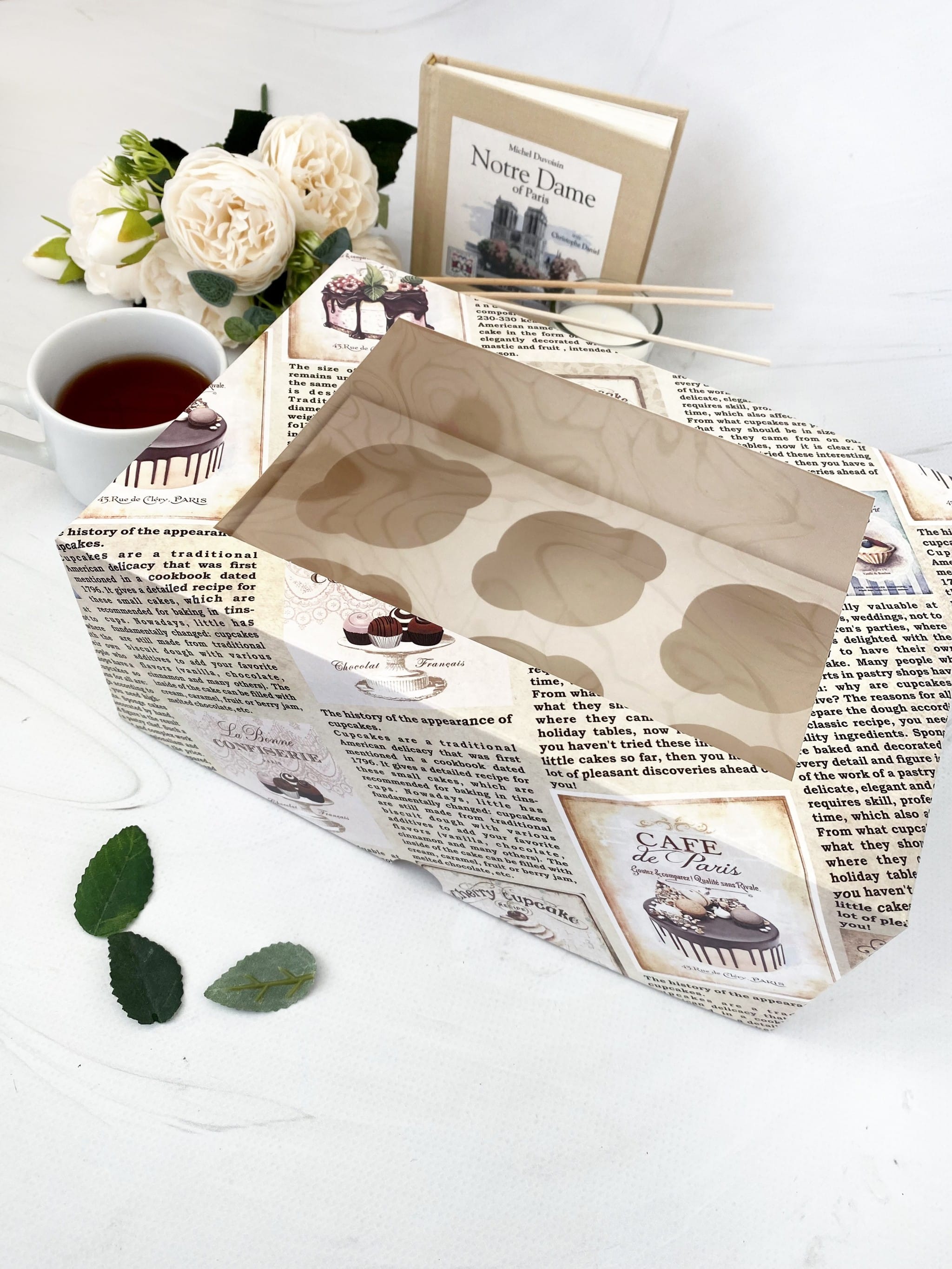 Упаковка под 6 капкейков, серия Газеты «Кафе»