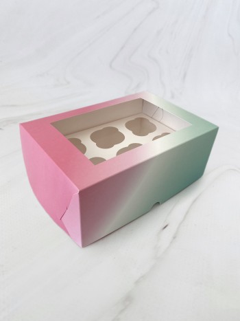 Упаковка под 6 капкейков с окном, розово-зеленый градиент