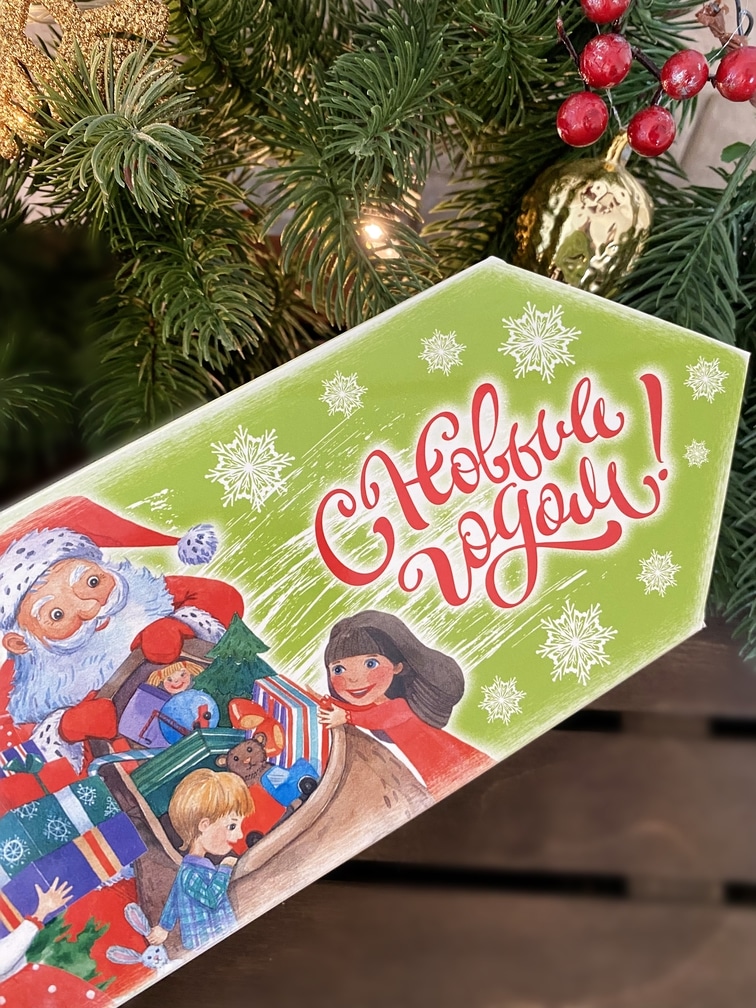 Коробка новогодняя подарочная конфета Дед Мороз и дети, 100х200х43 мм