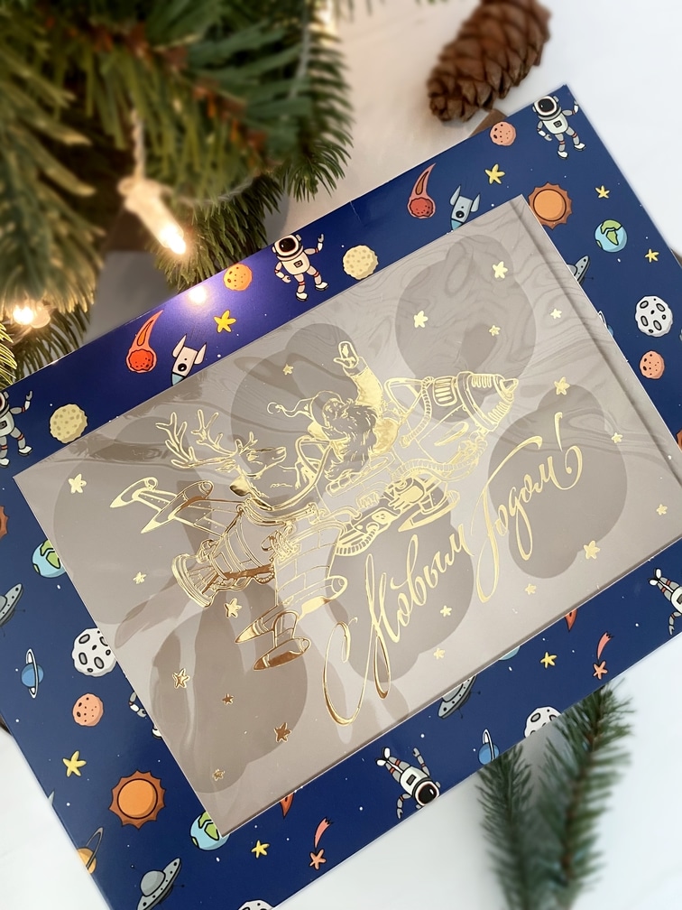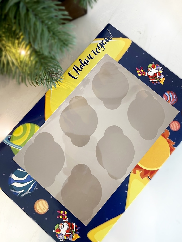 Упаковка под 6 капкейков с окном «Космический Новый Год»