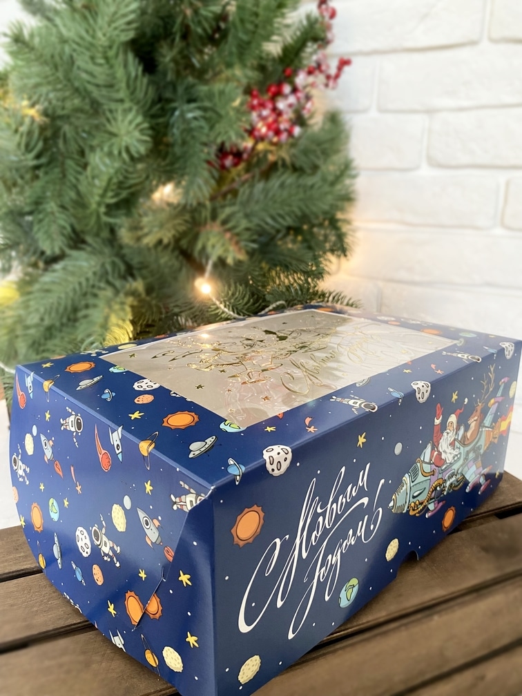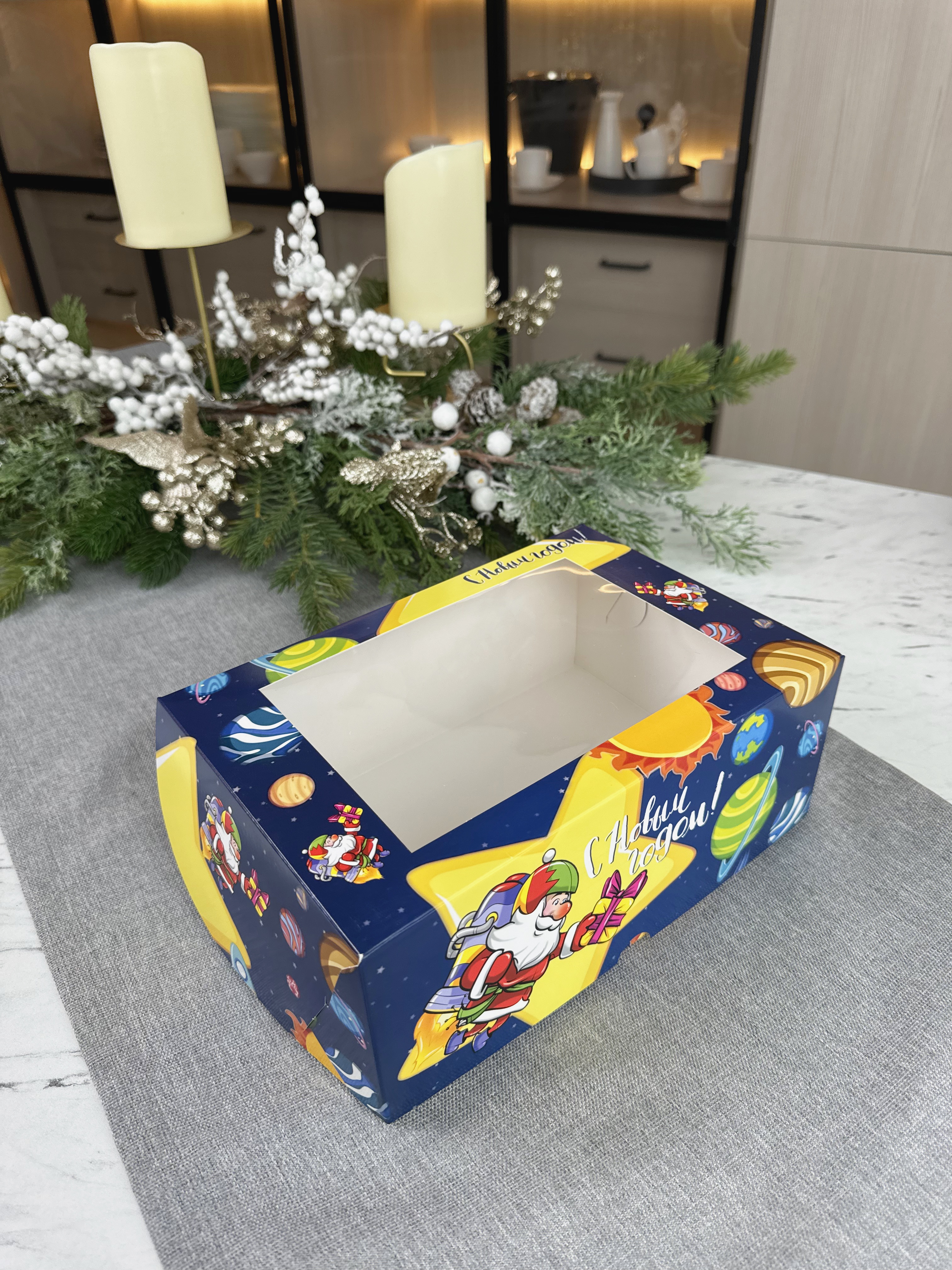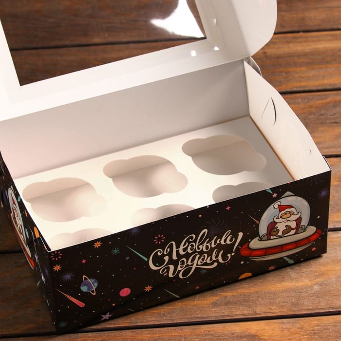 Упаковка под 6 капкейков с окном «Космический Новый Год»