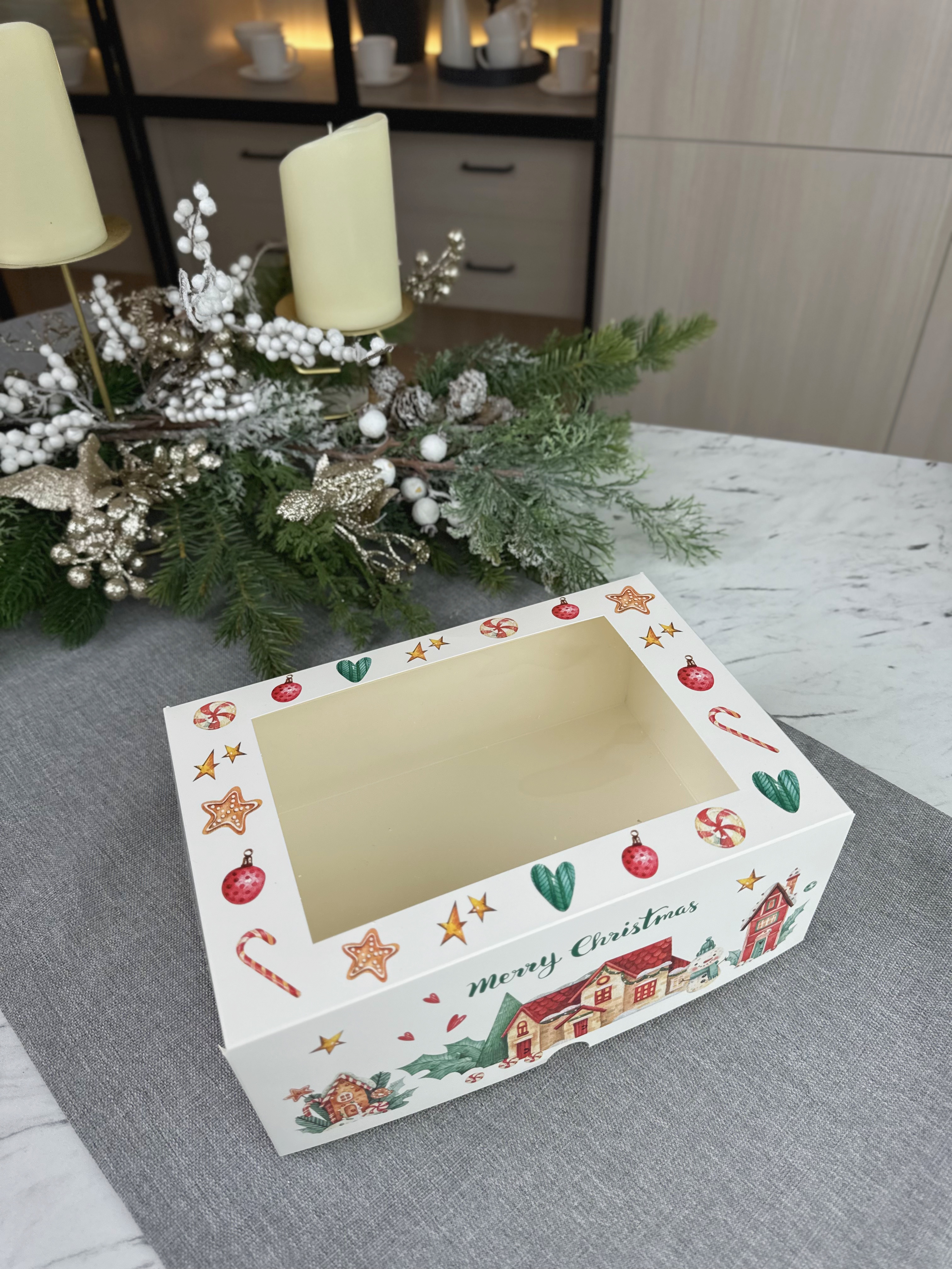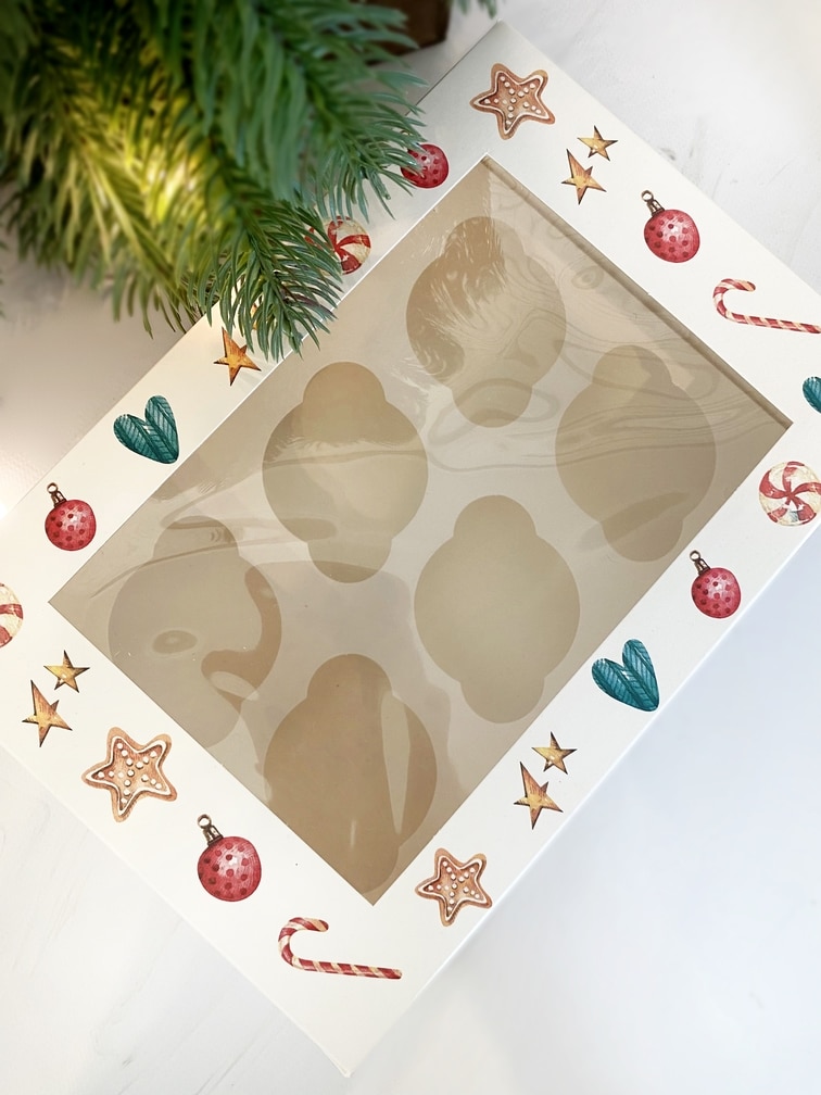 Упаковка под 6 капкейков с окном «Merry Christmas», белая