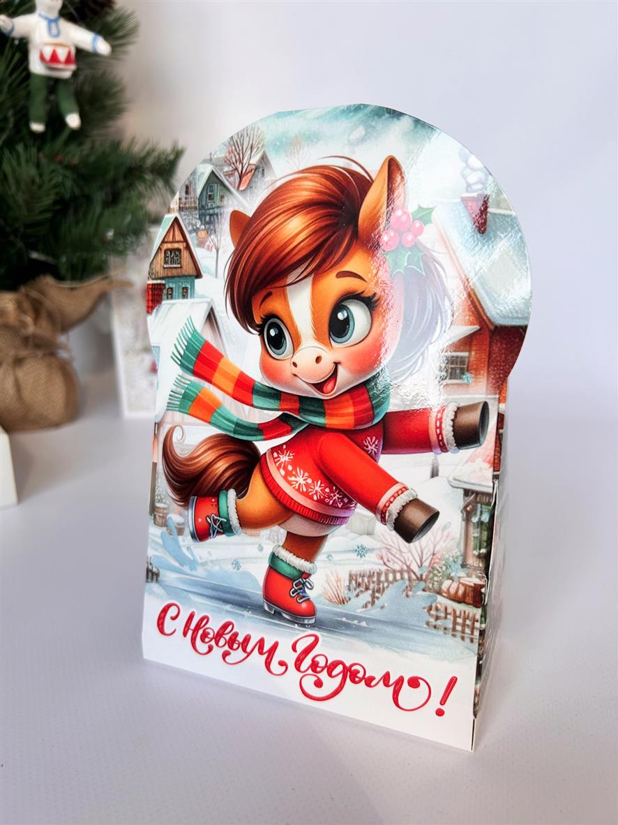 Коробка новогодняя подарочная Смекубик Конёк, 120х120х155 мм (коробка со шнурком)