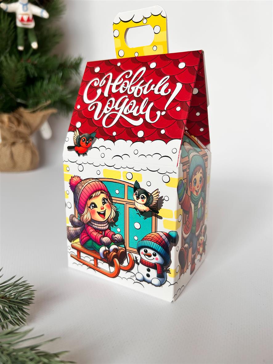 Коробка новогодняя подарочная Зимний праздник, 91х70х157 (+30) мм (домик)