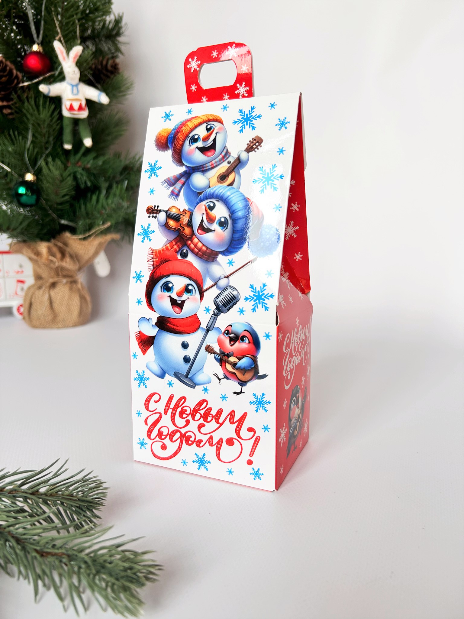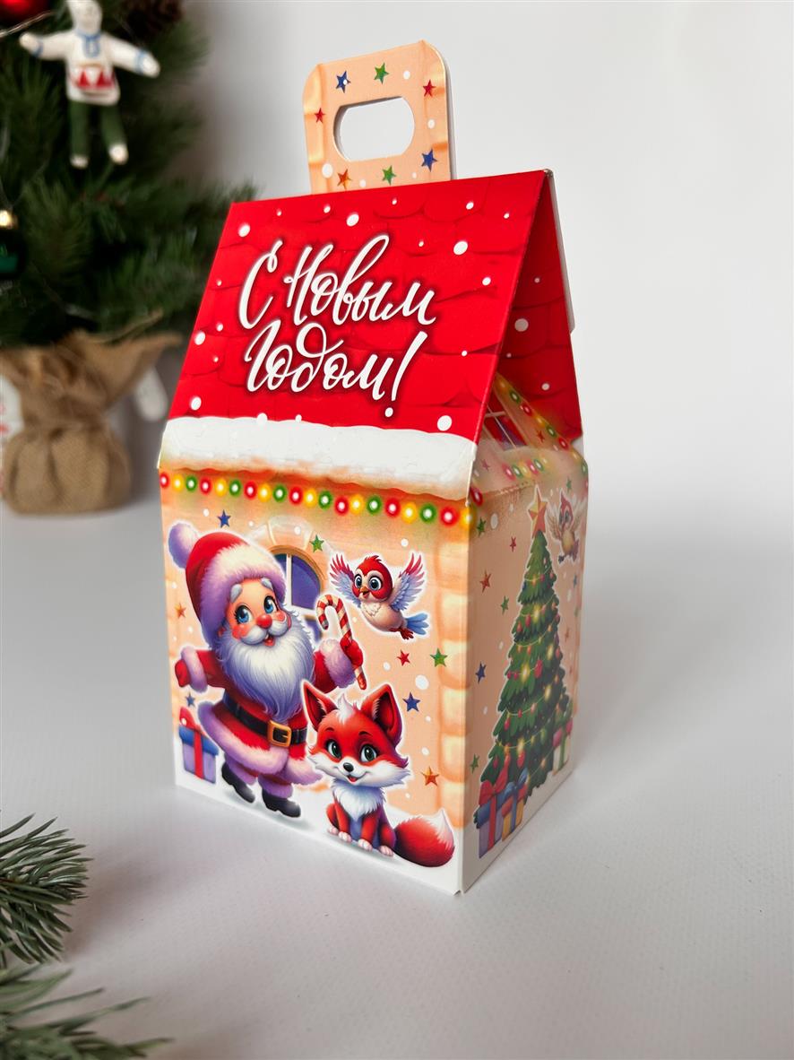 Коробка новогодняя подарочная Новогодний квинтет, 90х70х200 (+30) мм (домик)