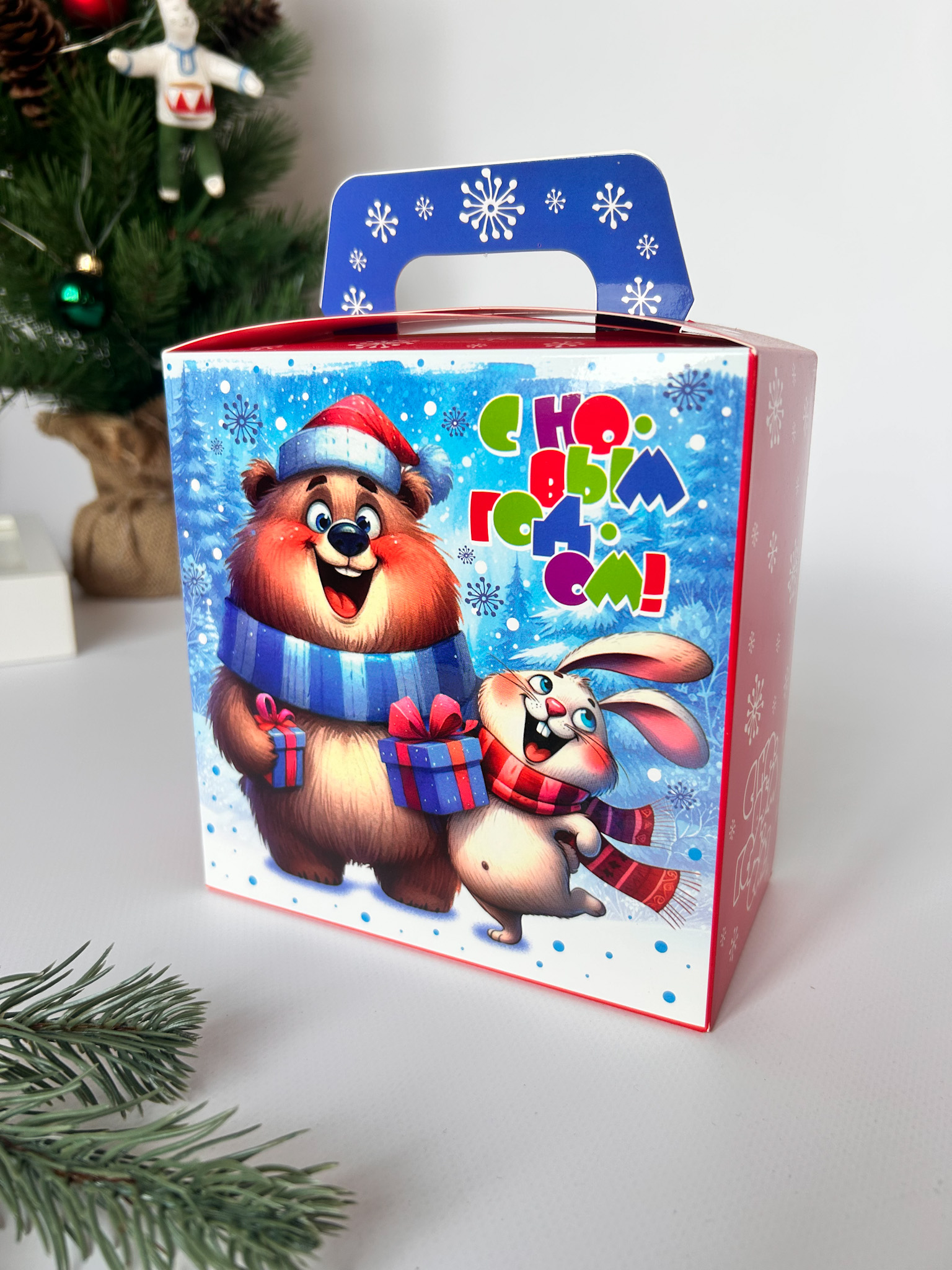 Коробка новогодняя подарочная Весёлые друзья, 145х80х150 (+40) мм
