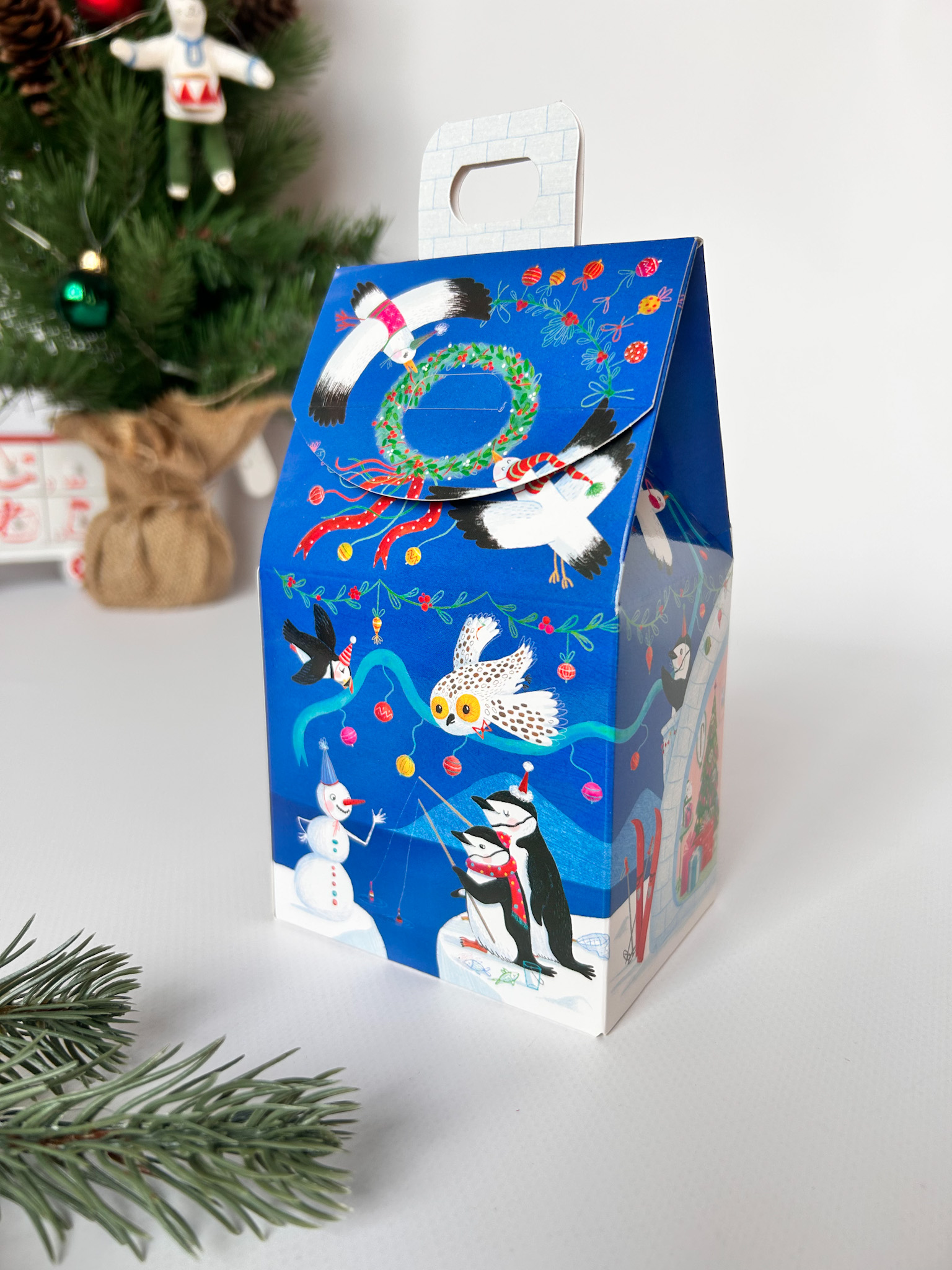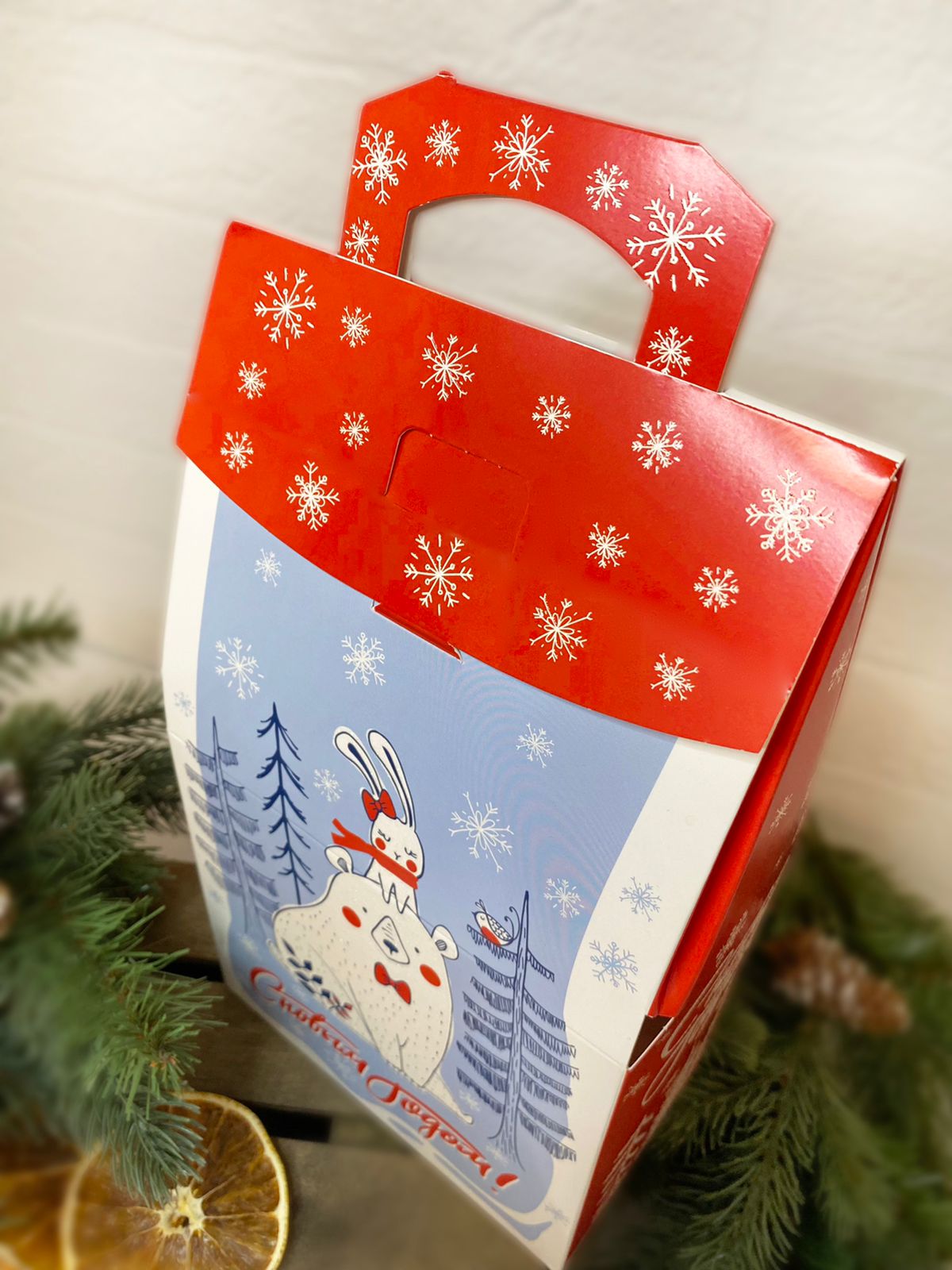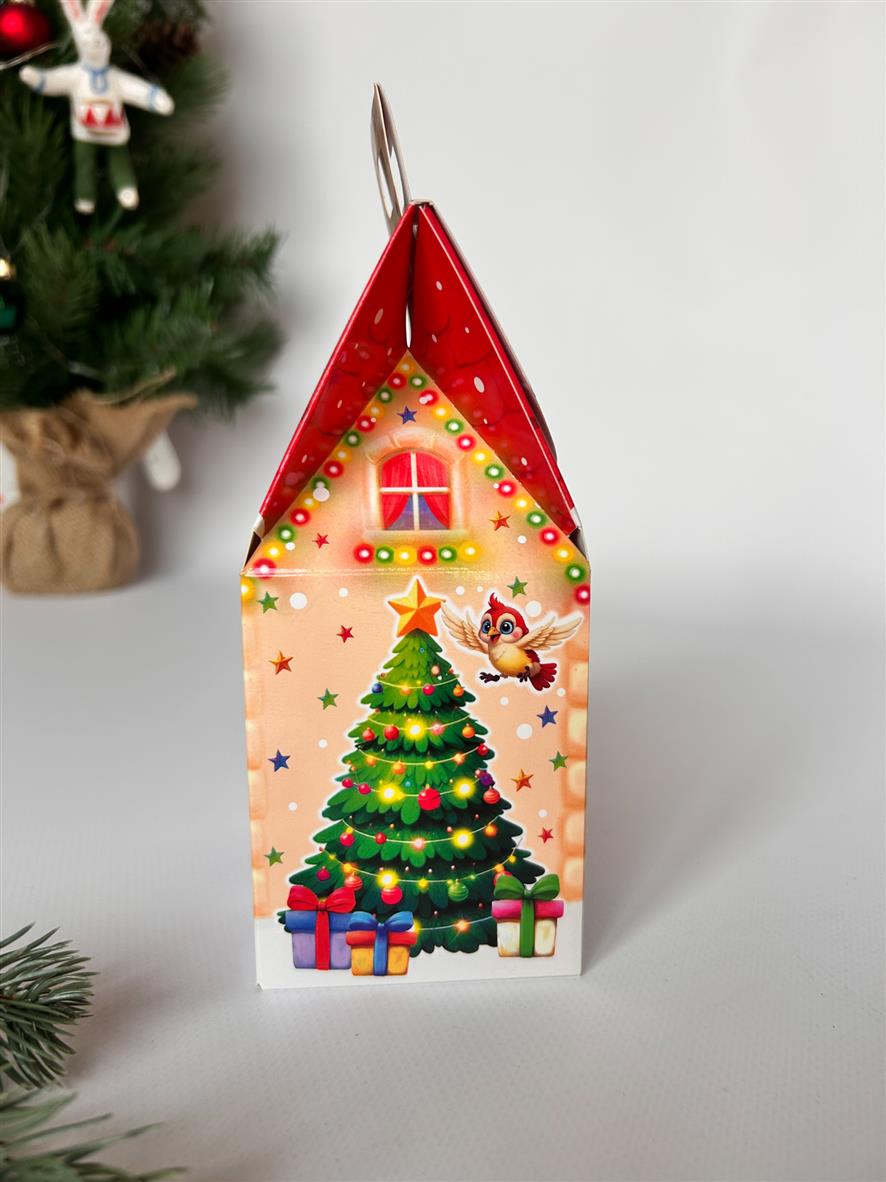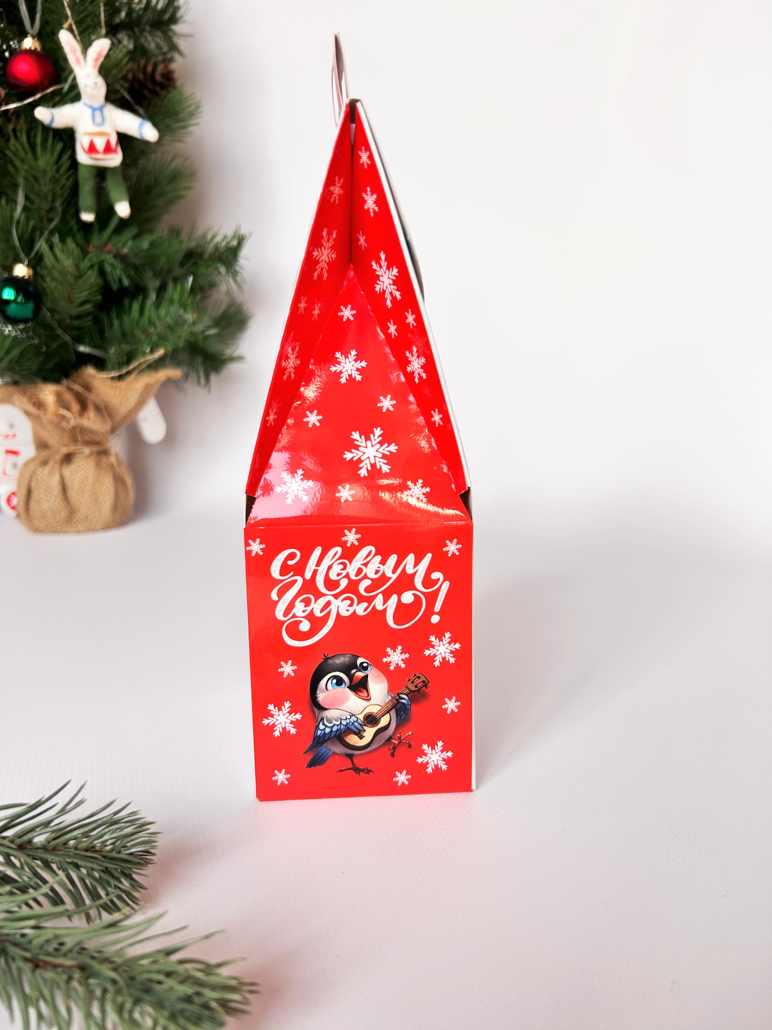 Коробка новогодняя подарочная Новогодний квинтет, 90х70х200 (+30) мм (домик)