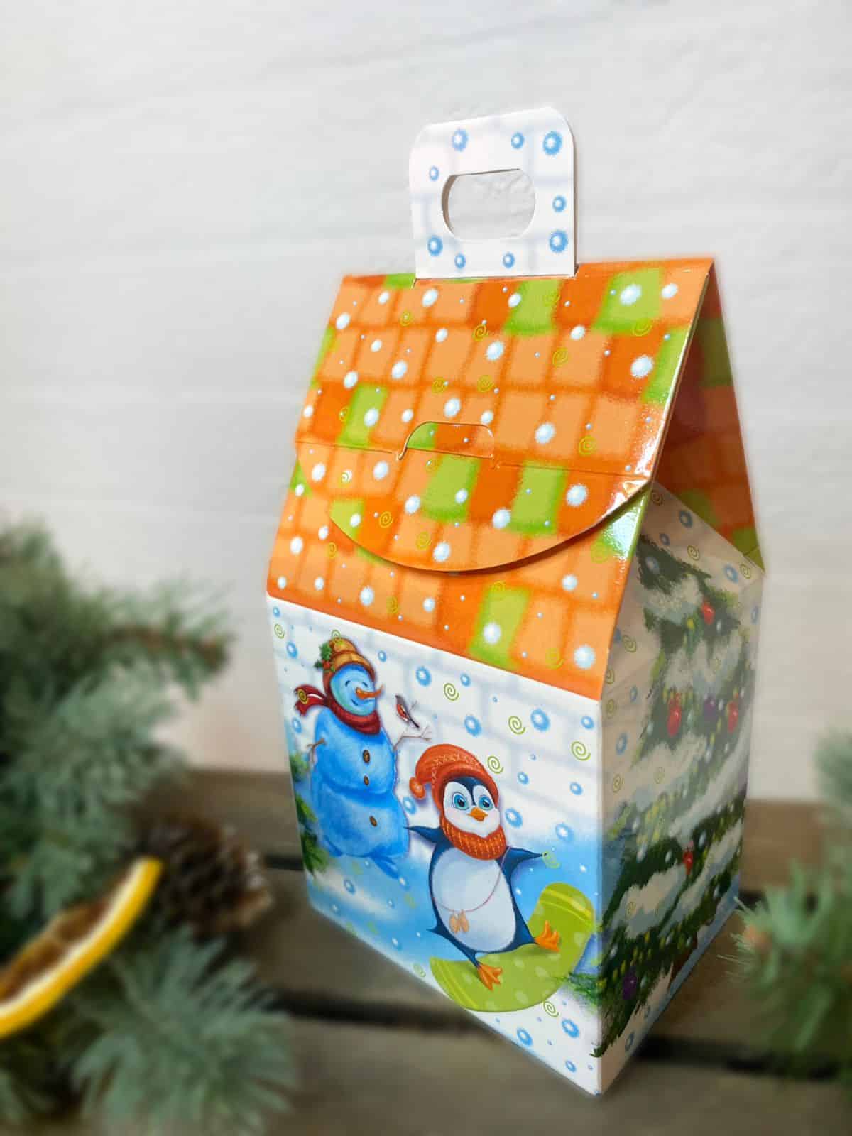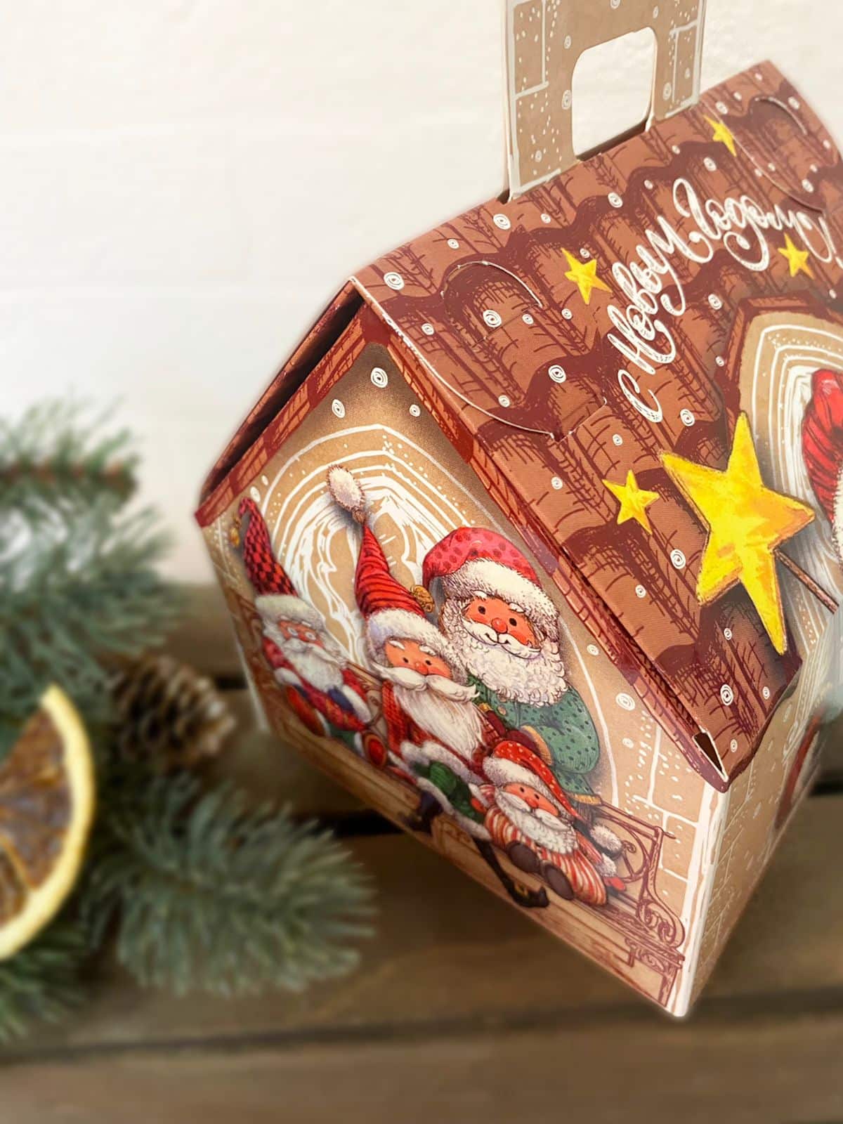 Коробка новогодняя подарочная Лесной домик, 91х70х157 (+30) мм (домик)