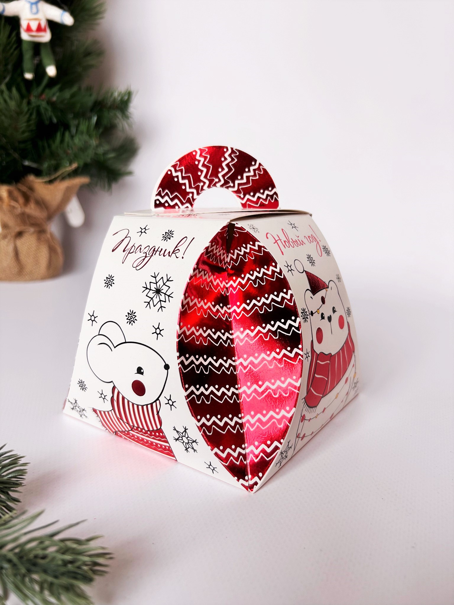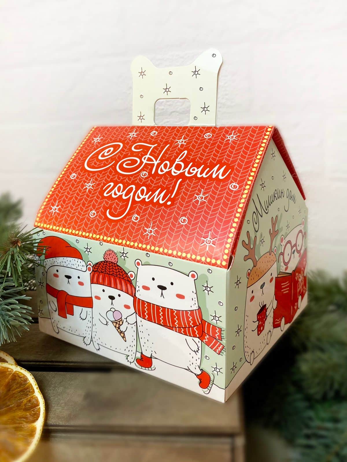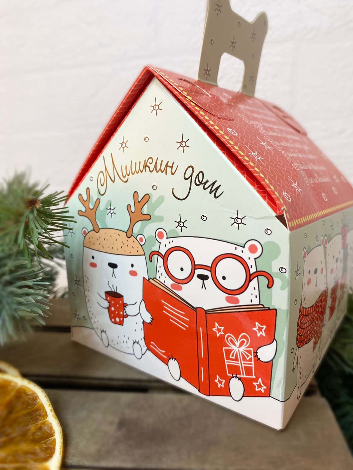 Коробка новогодняя подарочная Мишкин дом, 133х116х126 (+45) мм (домик)