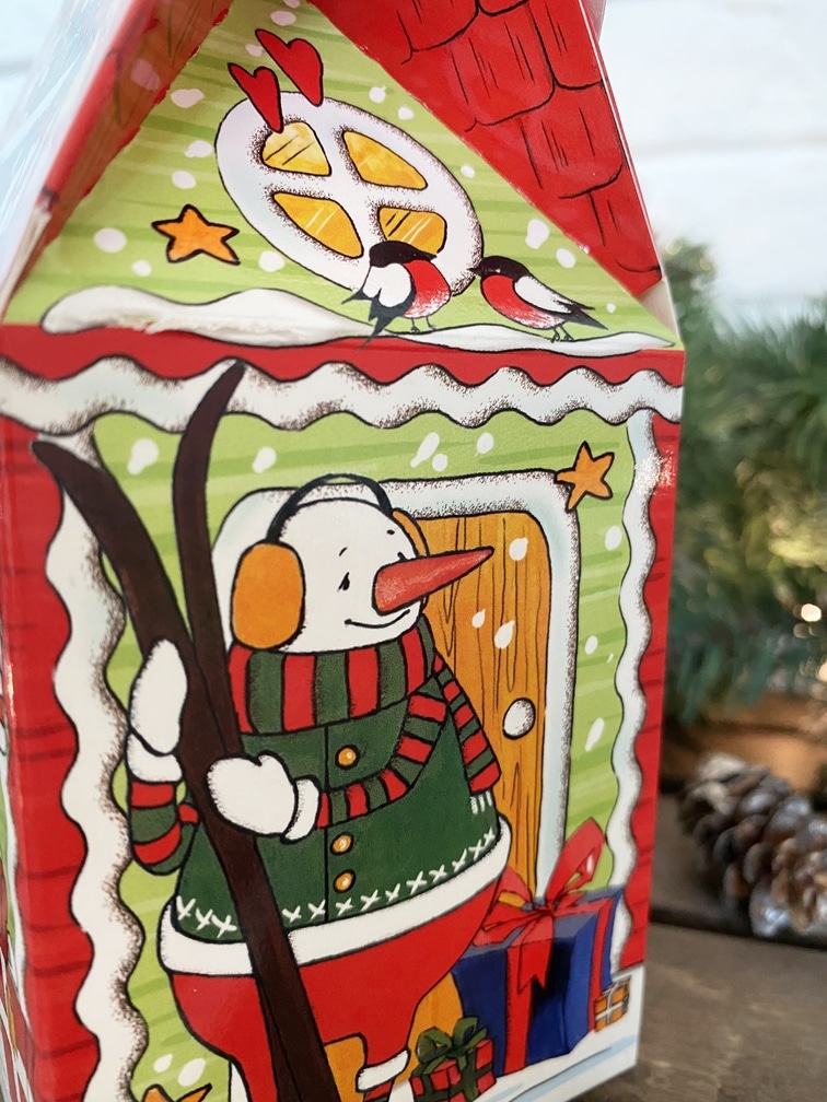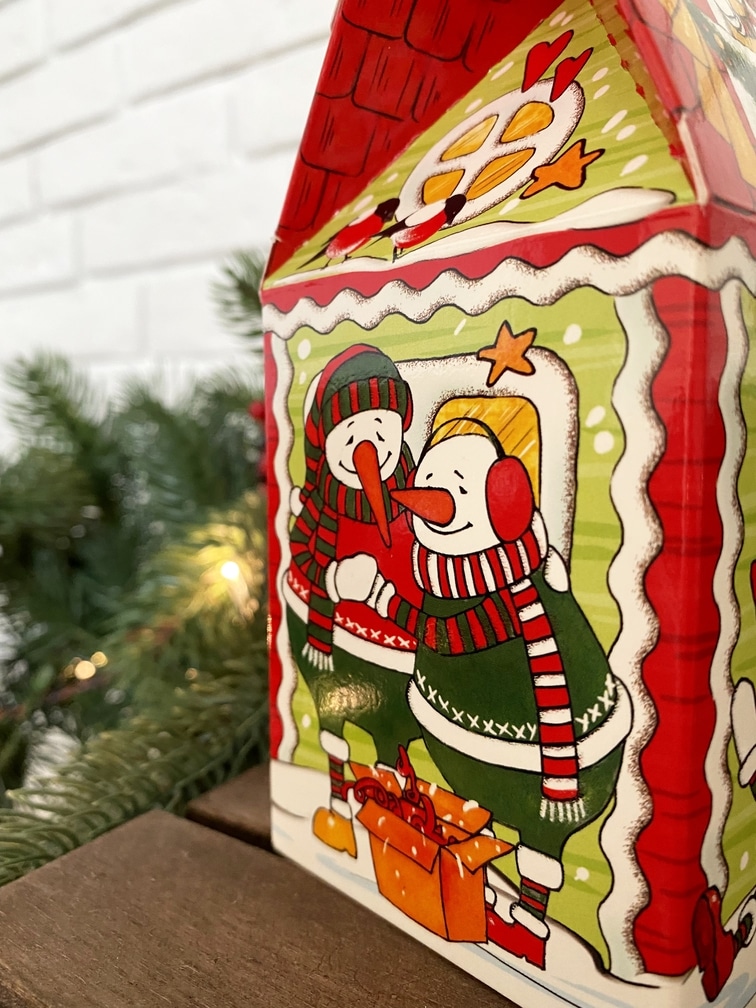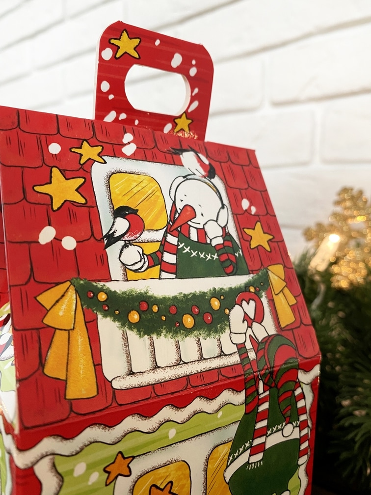 Коробка новогодняя подарочная Домик снеговиков, 91х70х157 (+30) мм (домик)
