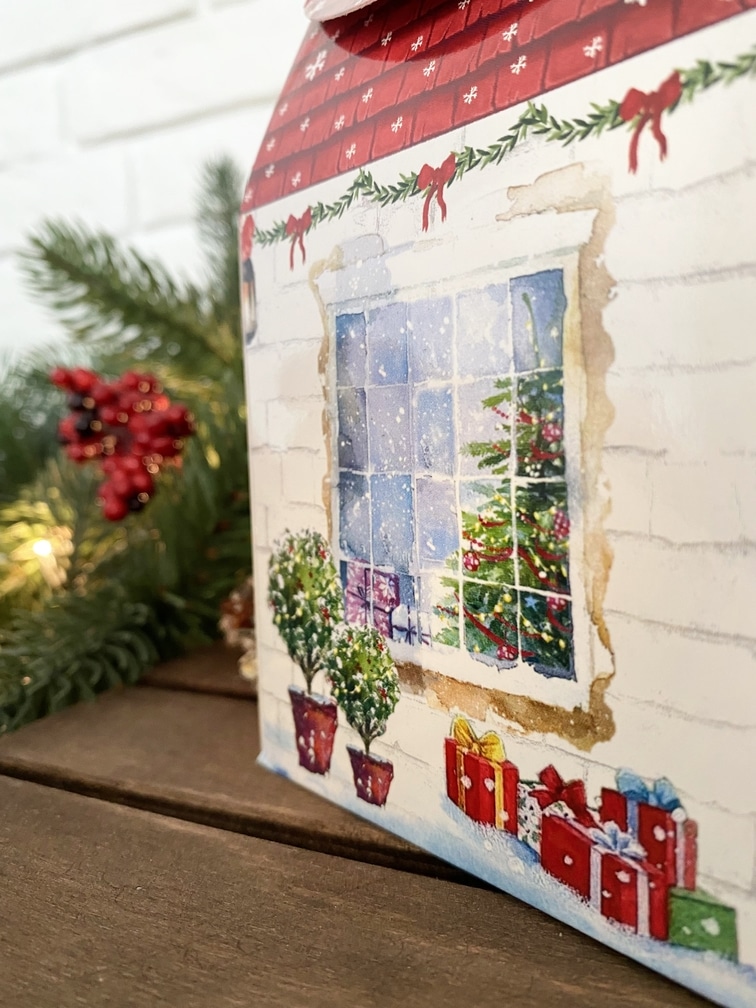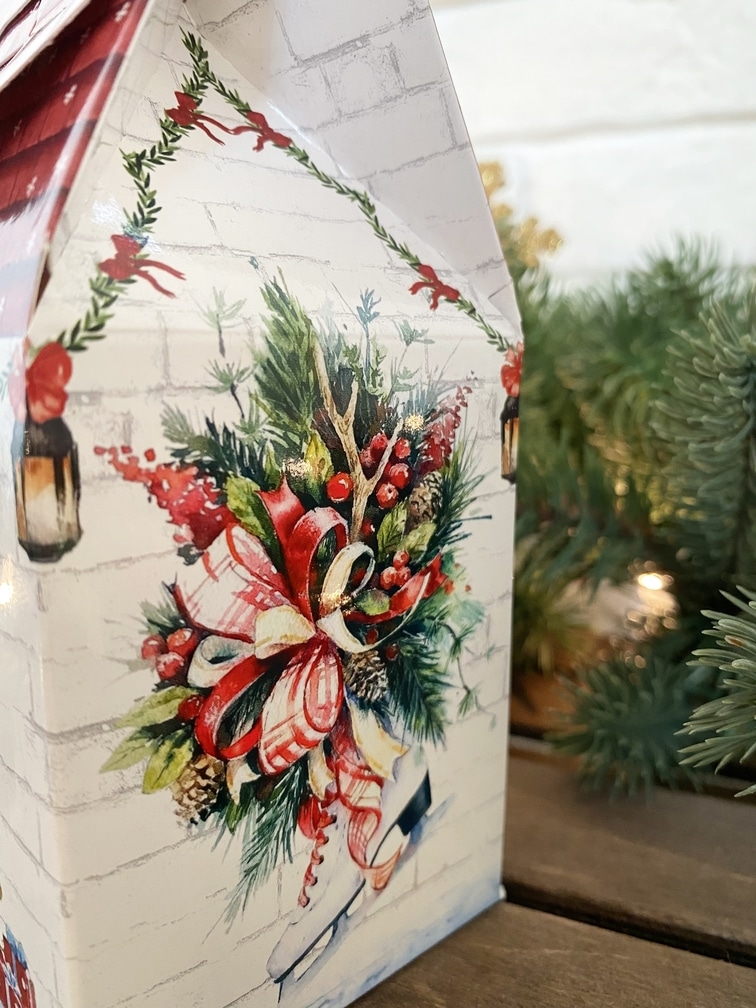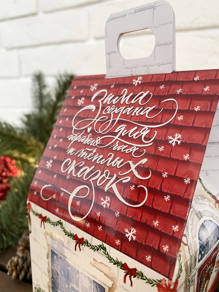 Коробка новогодняя подарочная Тёплая сказка, 91х70х157 (+30) мм (домик)