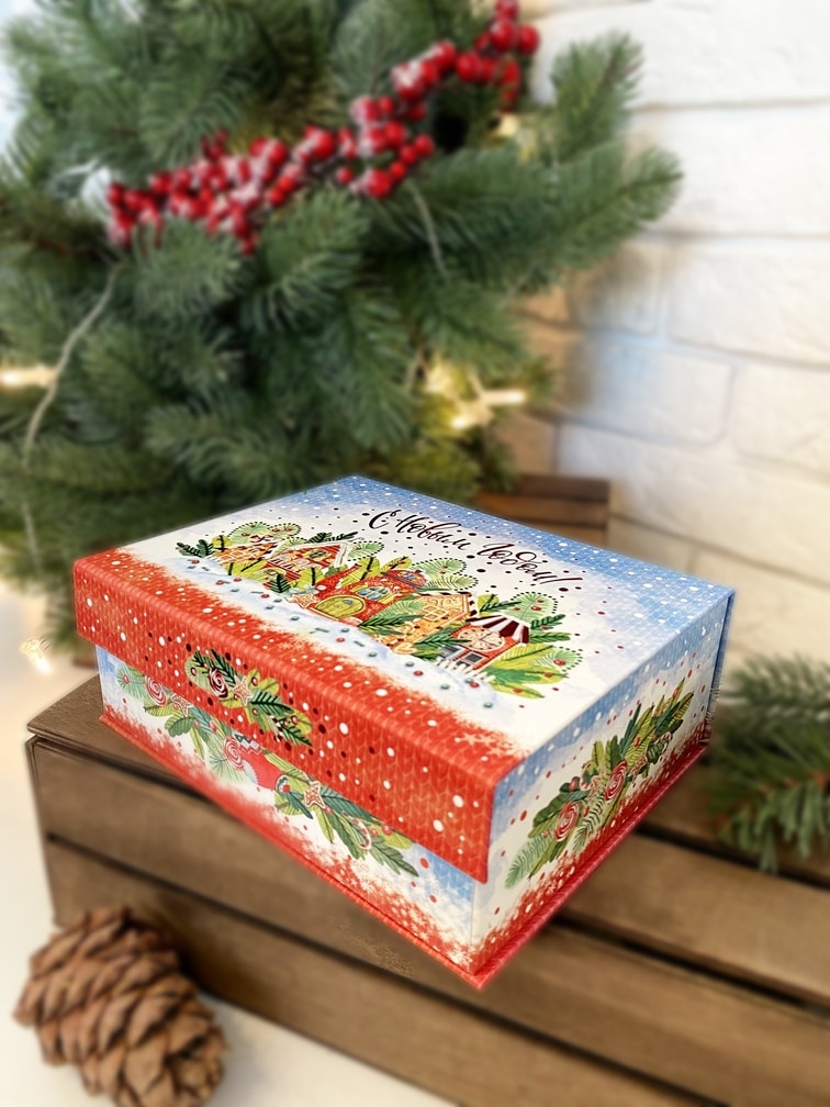 Подарочная упаковка от компании Center pack наполнит Ваши праздники волшебством, яркими красками и новогодним настроением. Крышка и дно коробки-шкатулка изготовлены из высокопрочного переплетного картона, стенки изготовлены из целлюлозного картона. Крышка плотно закрывается с помощью магнитных замков. Может использоваться для размещения тяжелой сувенирной продукции за счет усиленного дна изделия. Подходит для размещения конфет, сувенирной продукции, различных подарков подходящего размера. С наступающим Новым годом! Дарите с удовольствием:)