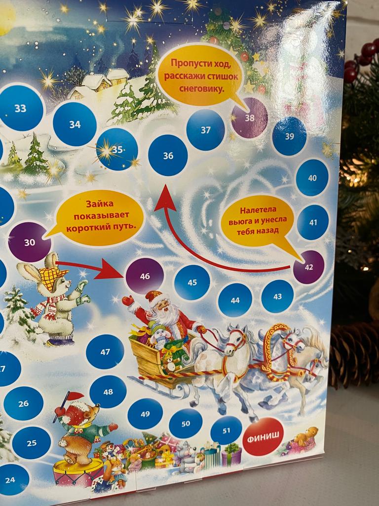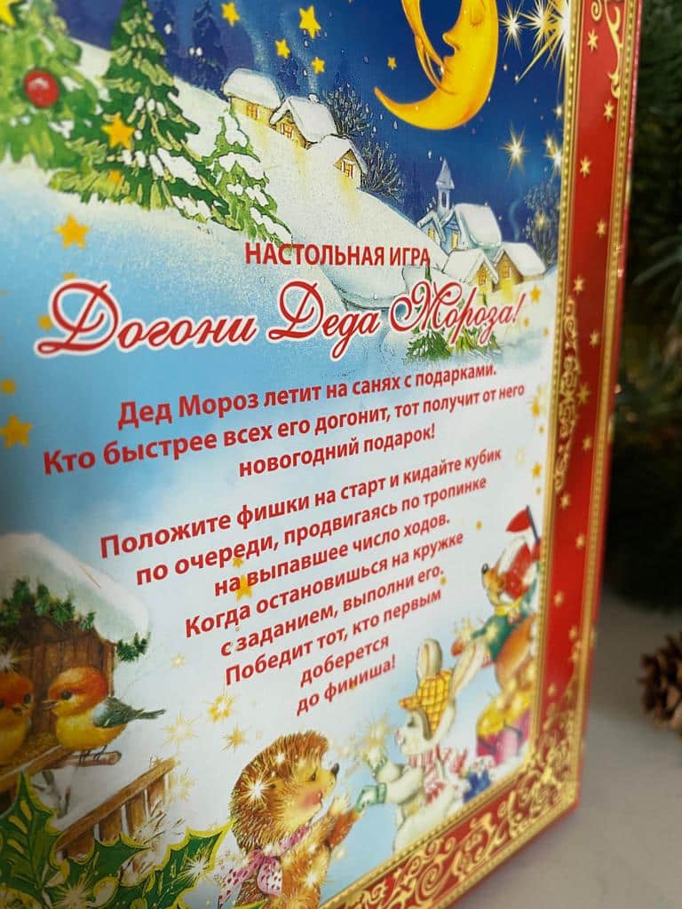 Будьте первым, кто оставил отзыв на “Коробка новогодняя подарочная книга-игра ходилка Догони Деда Мороза, 185х50х236 мм”