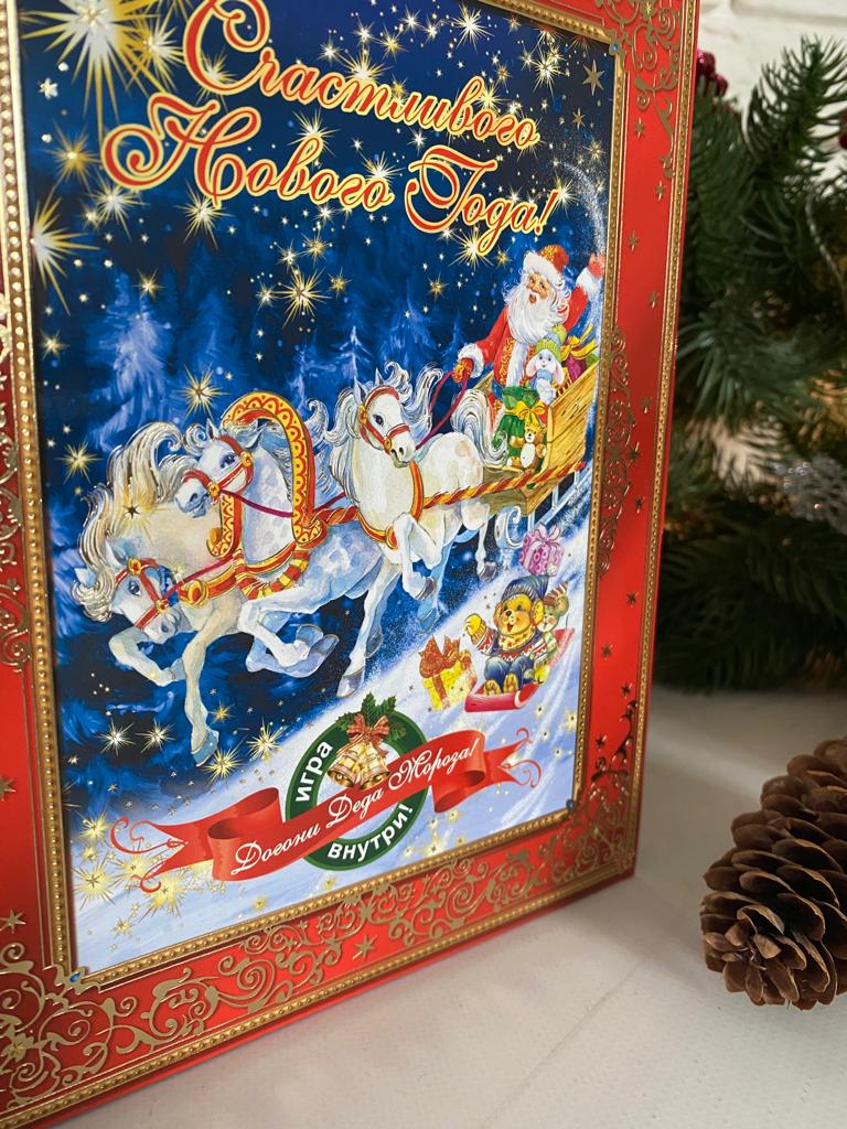 Коробка новогодняя подарочная книга-игра ходилка Догони Деда Мороза, 185х50х236 мм