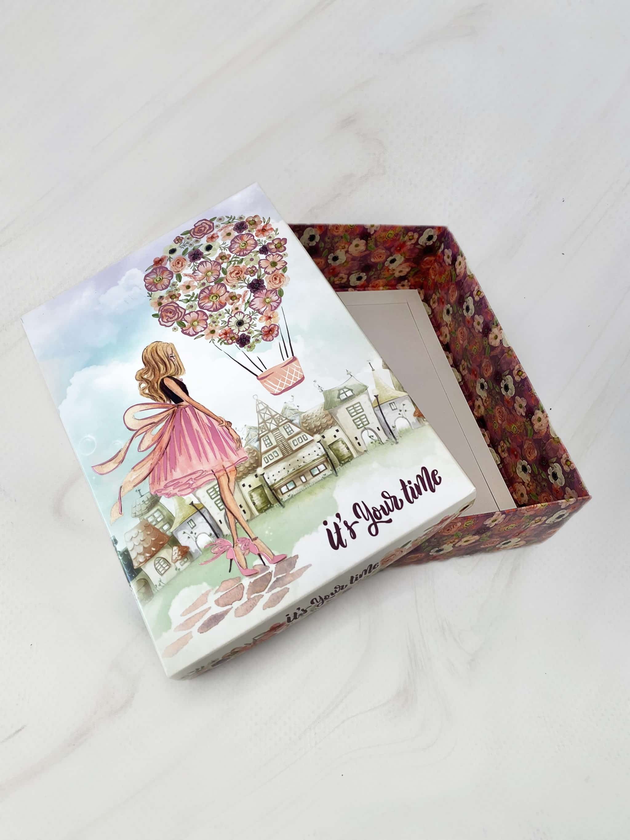 Универсальная подарочная упаковка в виде яркой красивой коробочки с крышкой. Подходит для упаковки кондитерских изделий, изделий ручной работы, игрушек, косметики и других вариантов подарков.