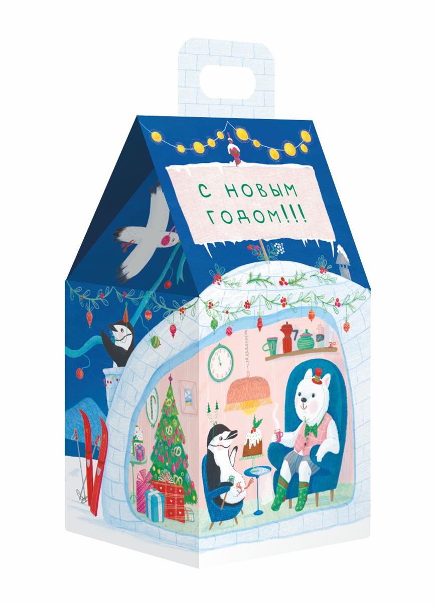 Коробка новогодняя подарочная Новогоднее иглу, 91х70х157 (+30) мм (домик)