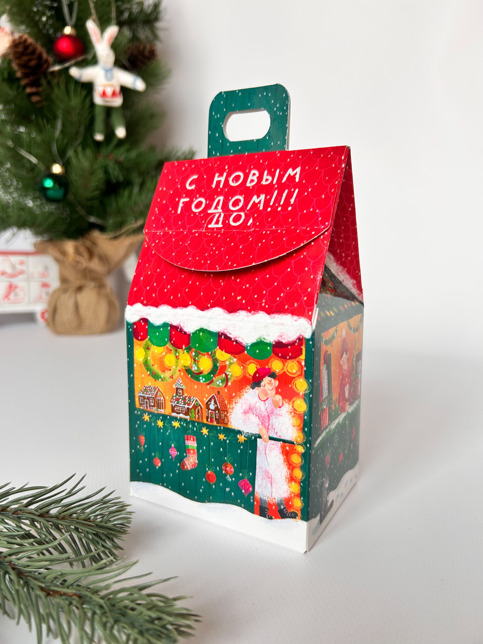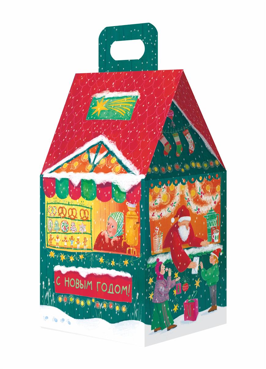 Коробка новогодняя подарочная Ярмарка, 91х70х157 (+30) мм (домик)