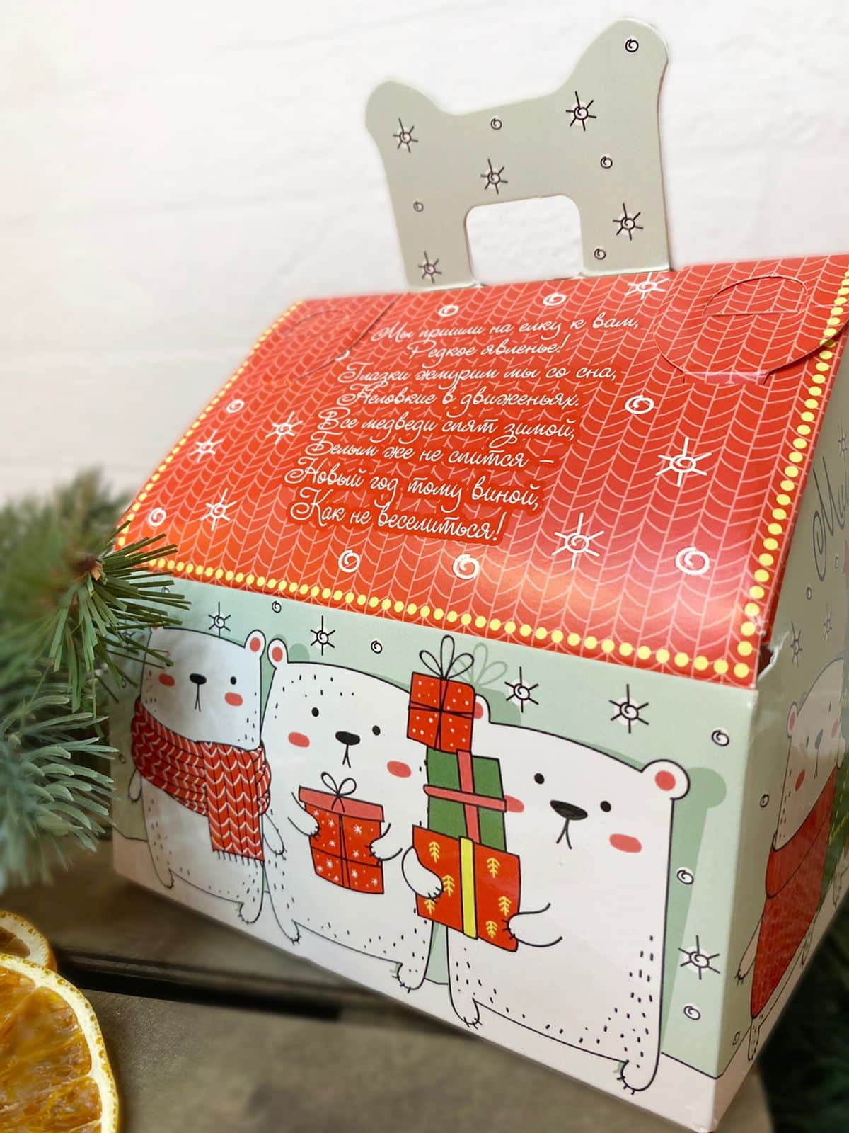Коробка новогодняя подарочная Мишкин дом, 133х116х126 (+45) мм (домик)