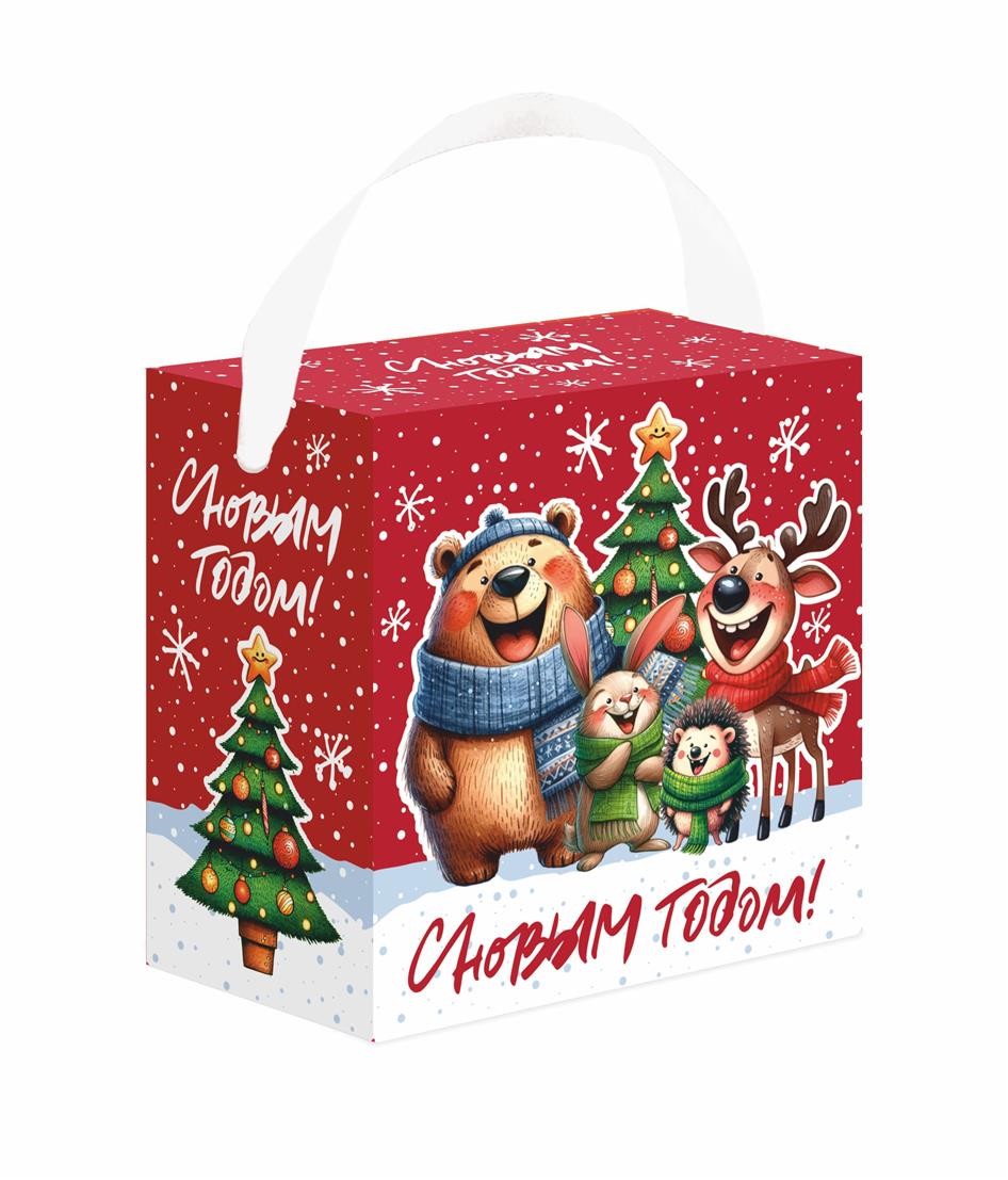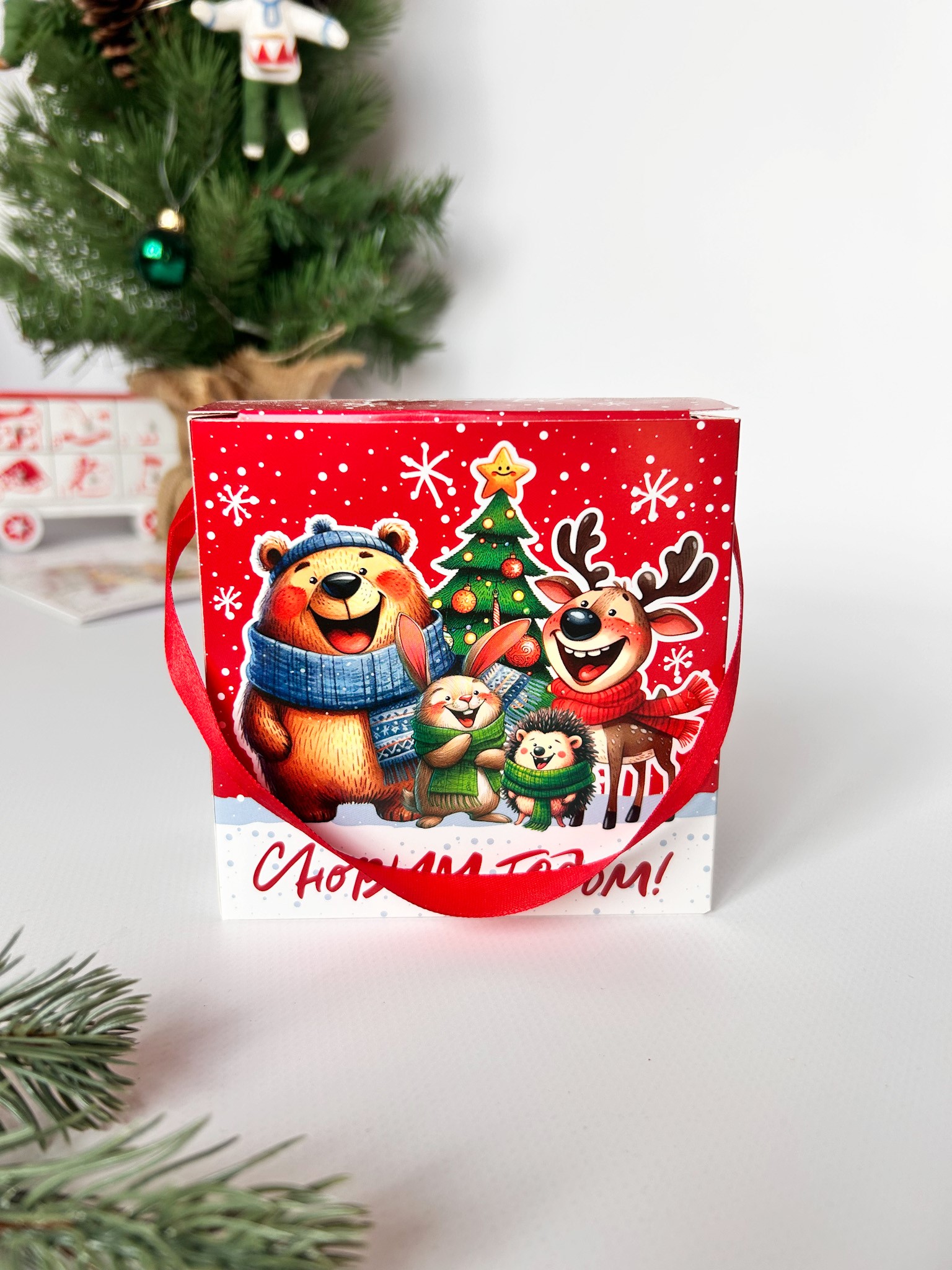 Коробка новогодняя подарочная Весёлая компания, 110х60х110 мм (моноблок с лентой)