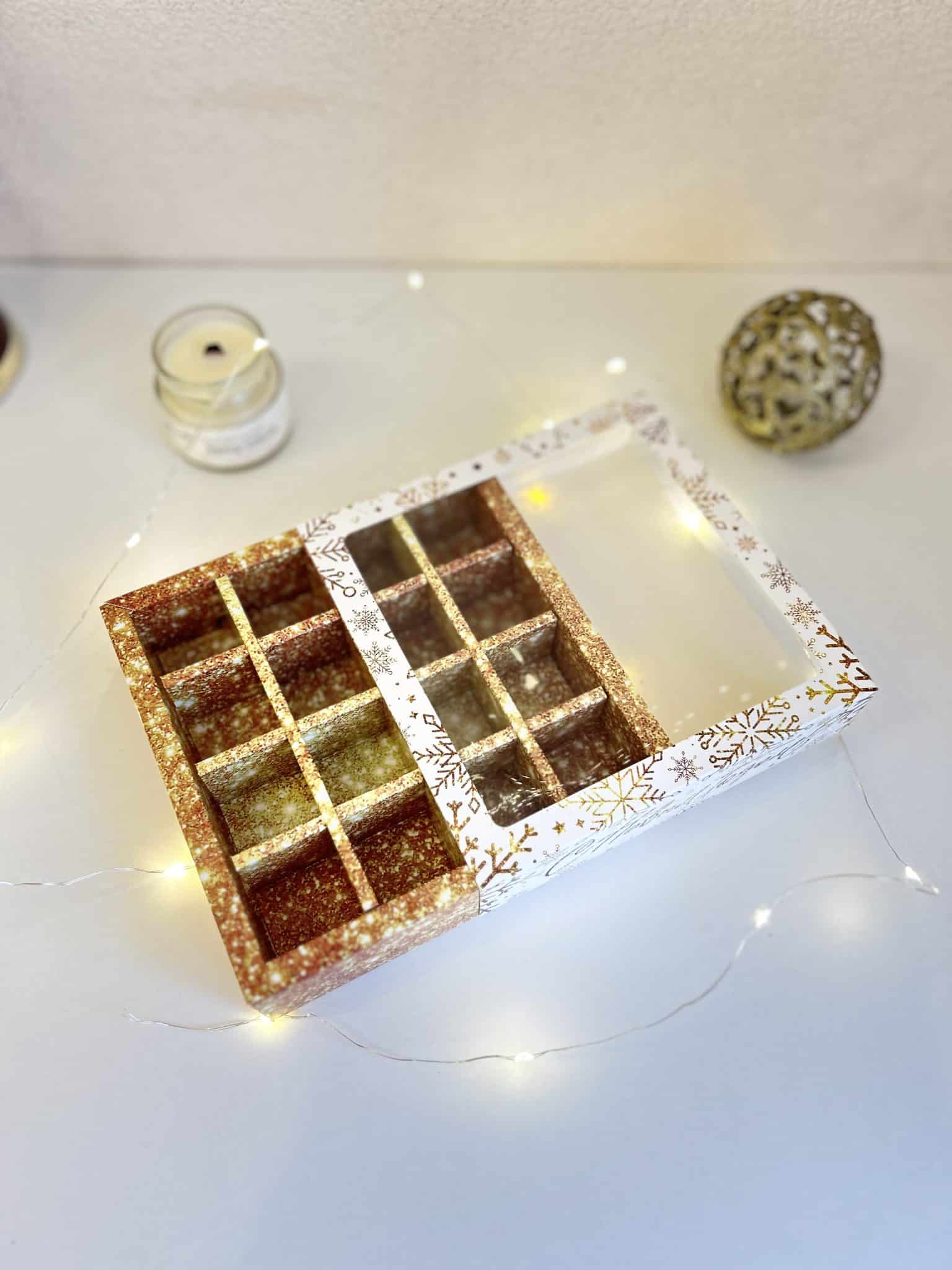 Коробка с окном под 16 конфет Золотая, 177х177х38 мм (дно и обечайка)