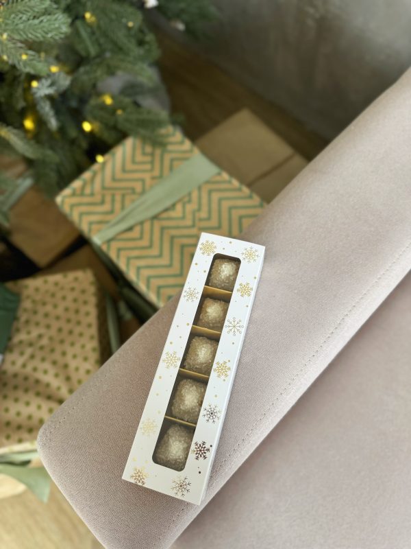 Коробка пенал на 5 конфет с внутренними разделителями, размер ячейки: 35х35х33 мм. Подходит для размещения сухофруктов, орехов в шоколаде и иных сладких презентов