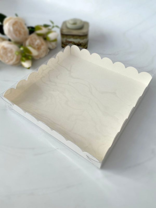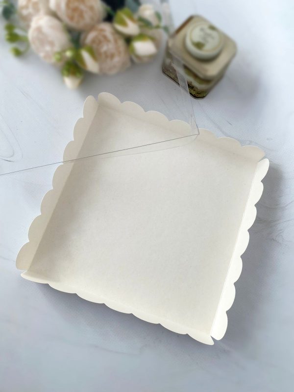 Кондитерская упаковка для размещения муссовых пирожных и моти диаметром не более 8 см., зефирных цветов, печенья и других кондитерских изделий. Крышка вставляется внутрь коробочки. Может быть использована в качестве универсальной упаковки
