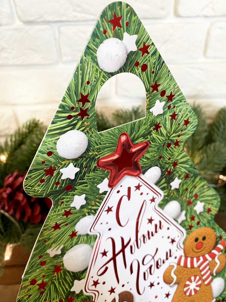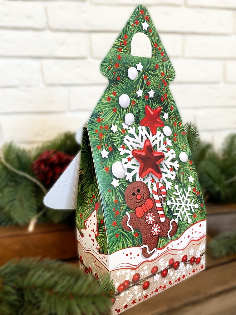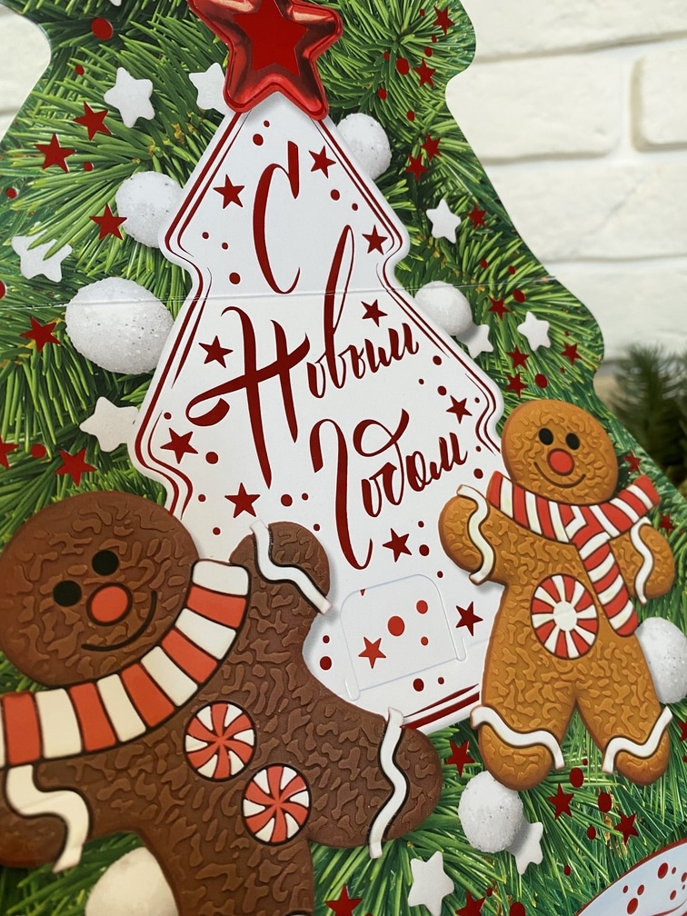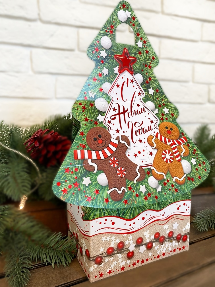 Коробка новогодняя подарочная Ёлка с пряниками, 157х95х225 (+140) мм (коробка-елочка)