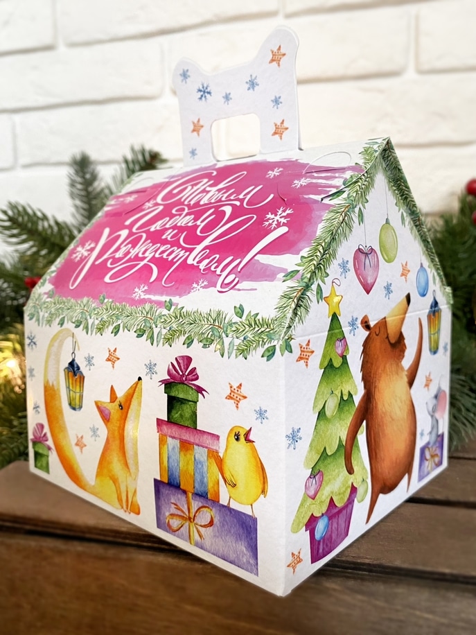 Подарочная упаковка Новогодней тематики от компании Сenter pack наполнит Ваш праздник волшебством, яркими красками и новогодним настроением. Подходит для размещения сладостей, изделий ручной работы.
