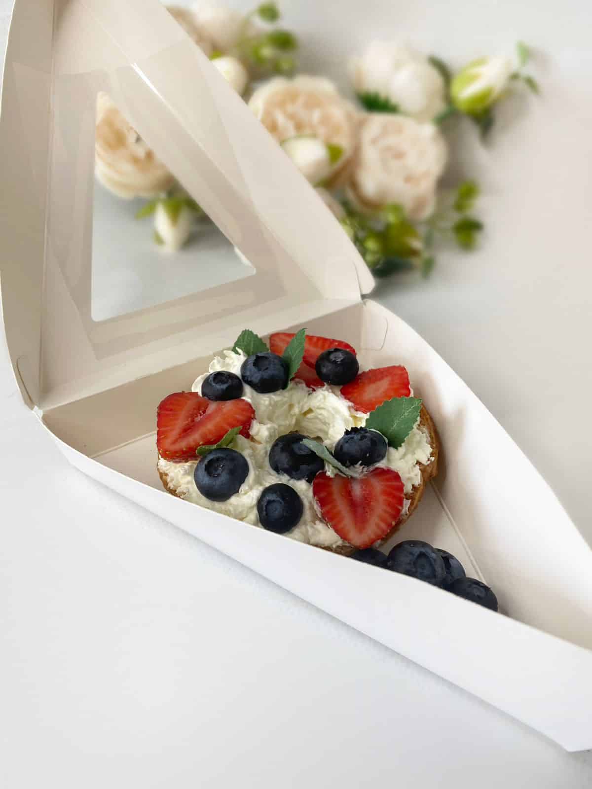 Новинка 2023 года. Треугольник для пирога, кусочка пиццы. Выполнен из плотного картона с внутренней ламинацией. Предназначен для размещения кусочков торта, пиццы, различного рода пирогов. В коробочке оригинально смотрятся кондитерские изделия круглой формы диаметром 8-9 см. и высотой 3-3,5 см. (тарты, пирожные, заварные кольца, печенье сендвиджи, пончики и т.п.)