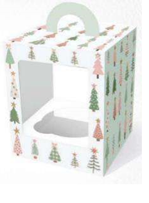 Коробка с окном под 1 капкейк/маффин/пирожное с окном Ёлочки, 92х92х111