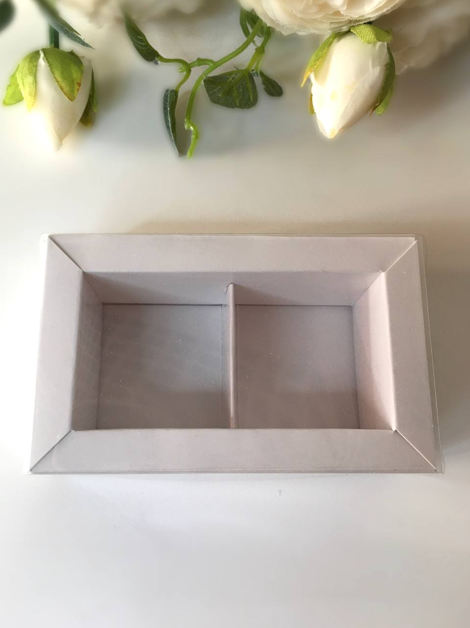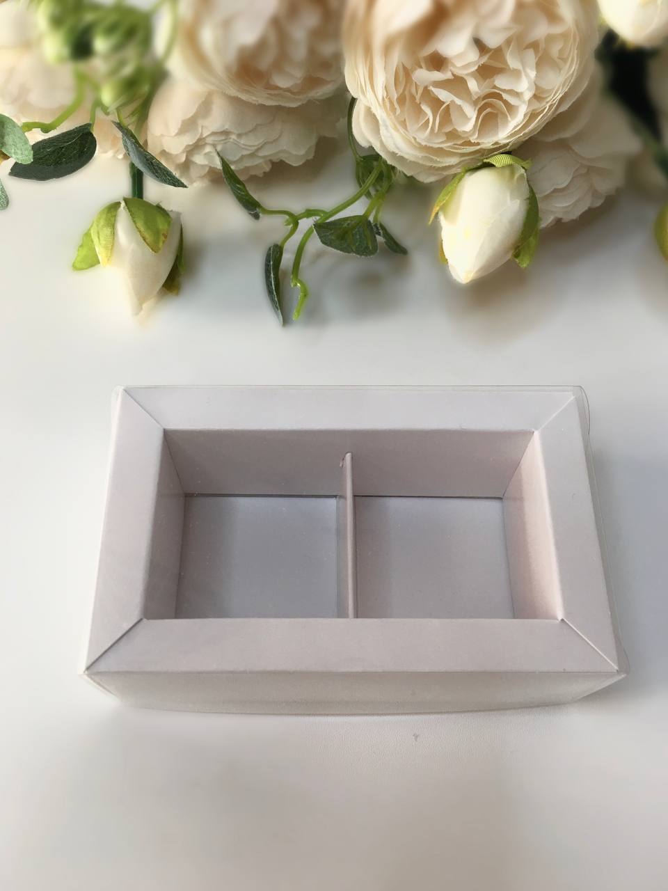 Коробка с прозрачной крышкой 2 конфеты с тонкими разделителями, белый
