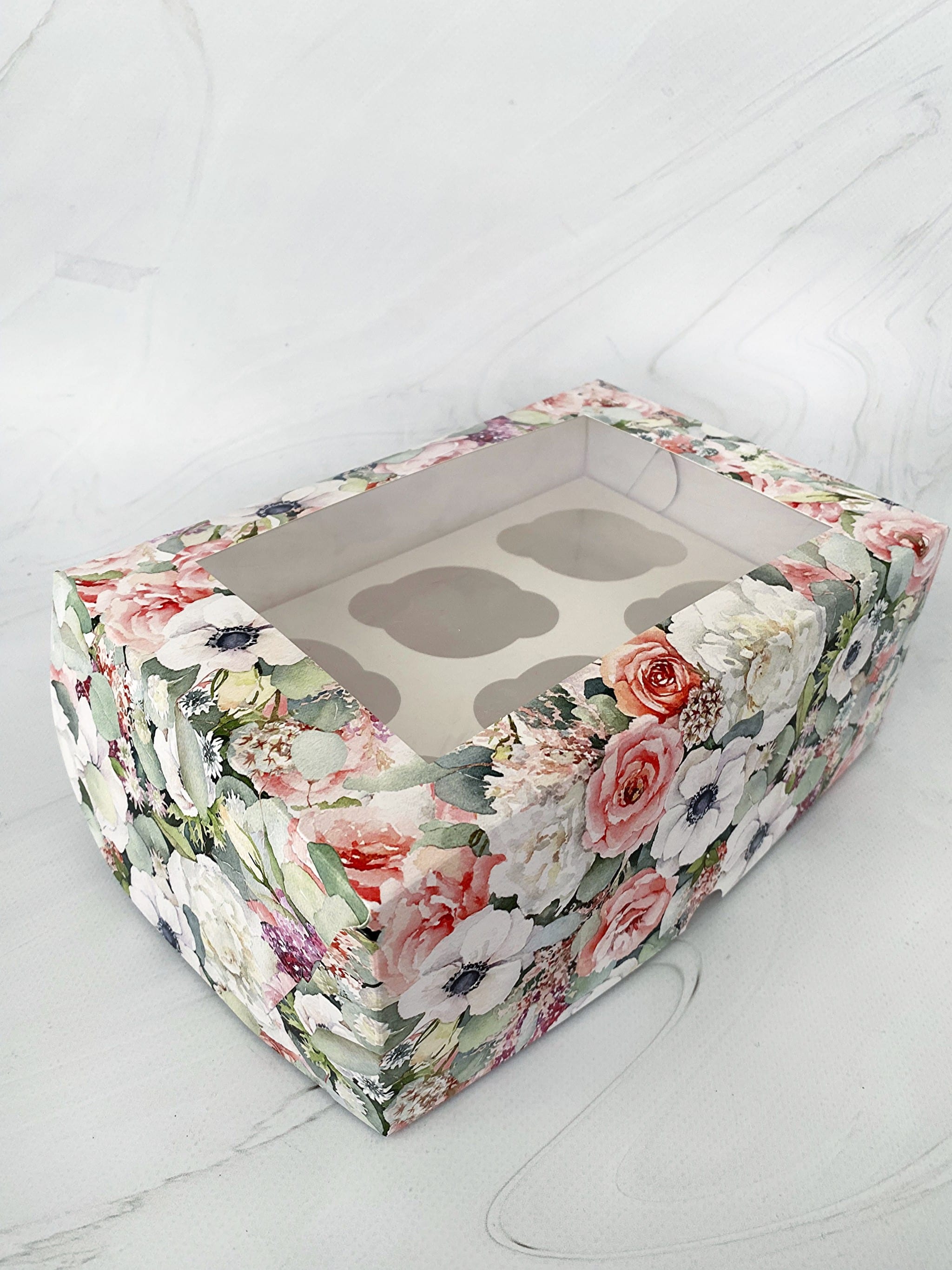 1 отзыв Упаковка под 6 капкейков с окном «Цветочки»