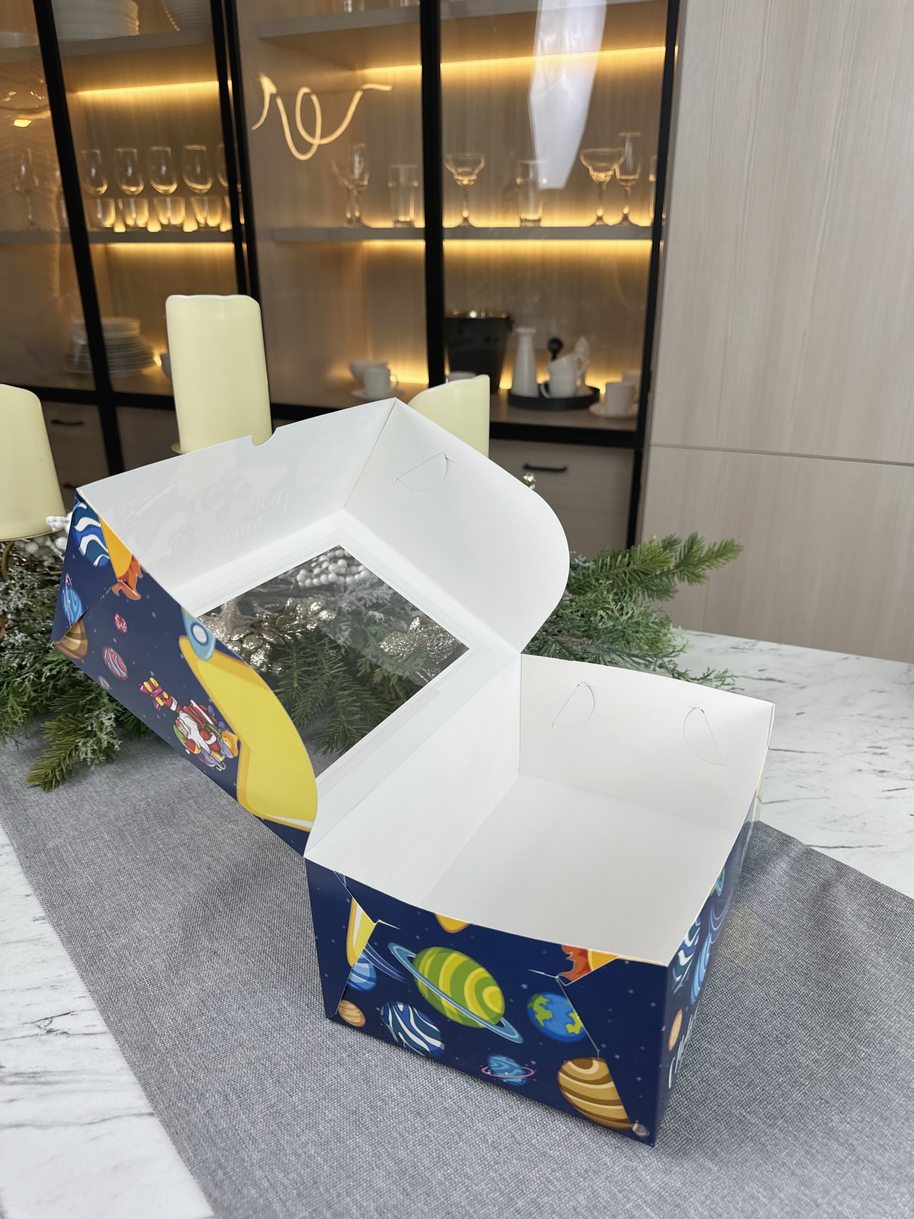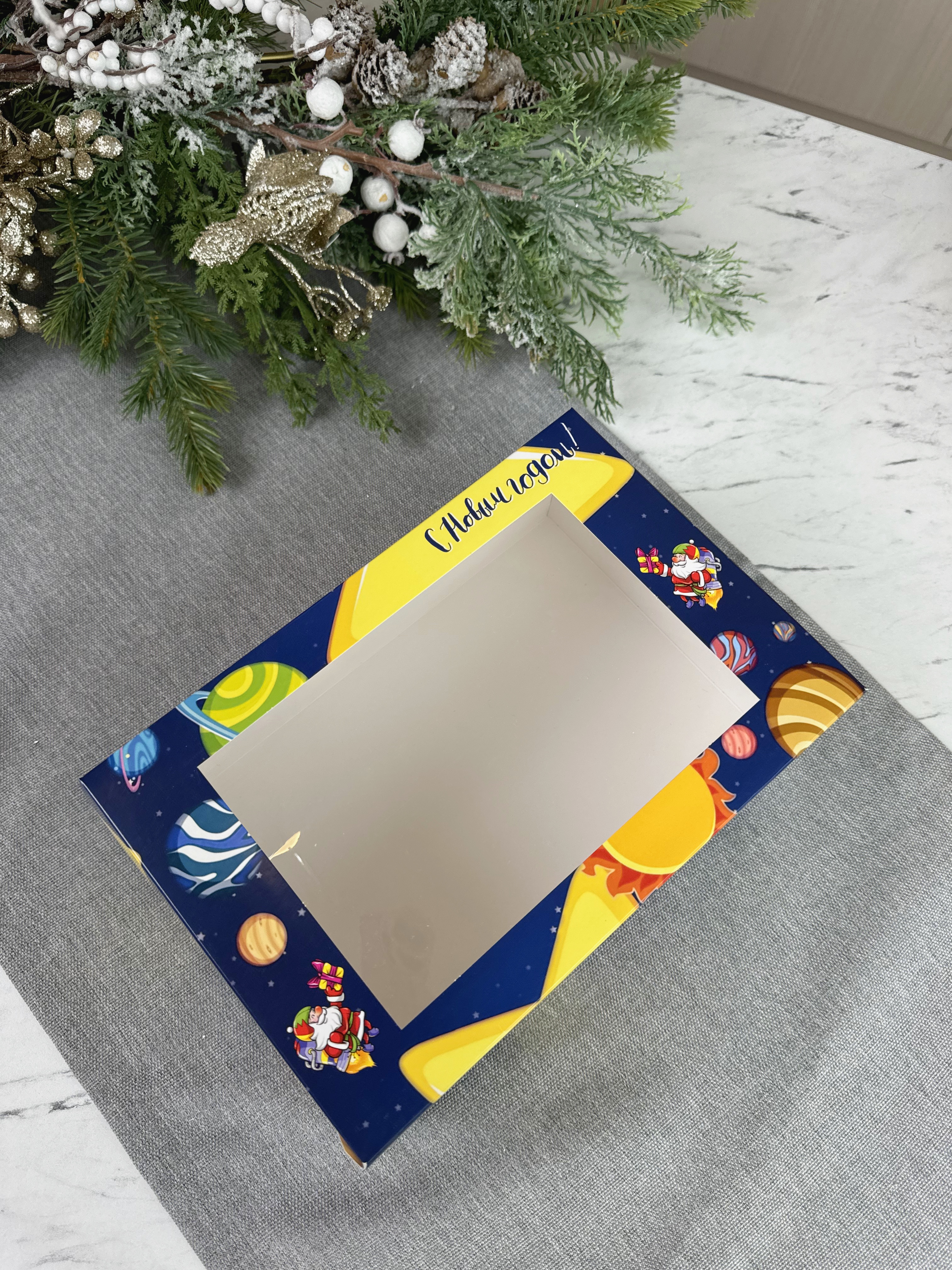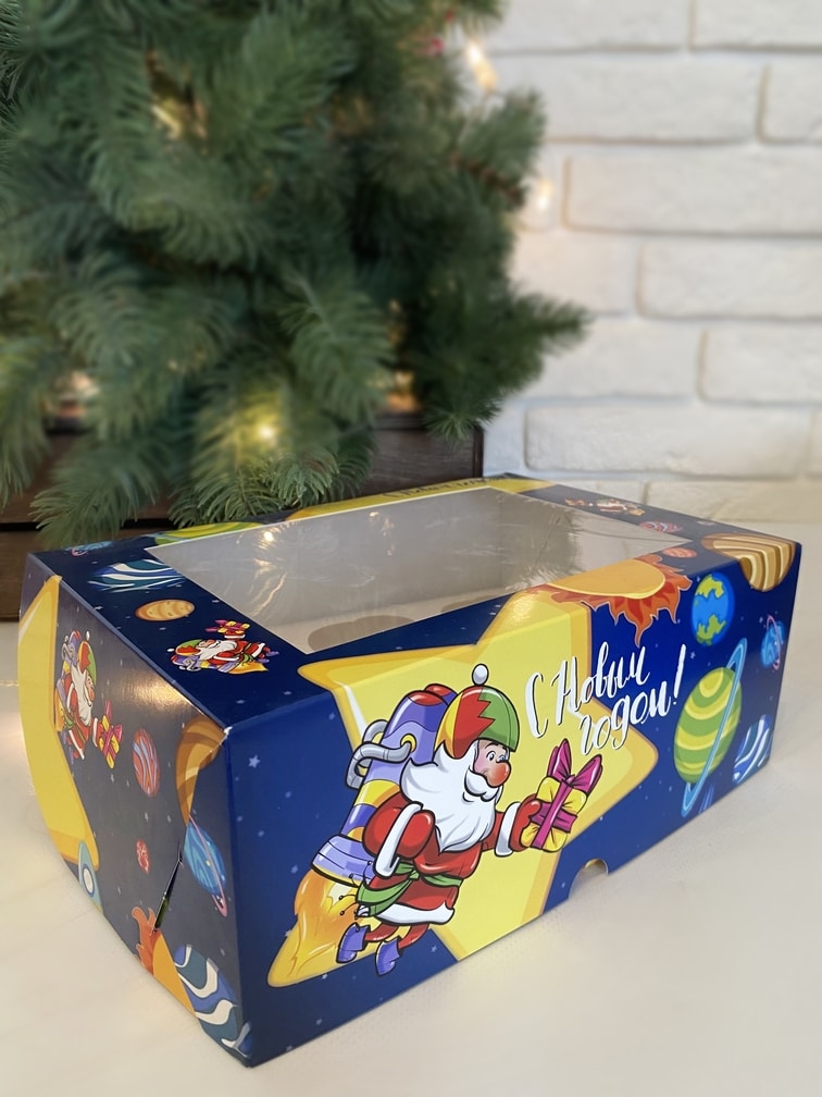 Упаковка под 6 капкейков с окном «Космический Новый Год»