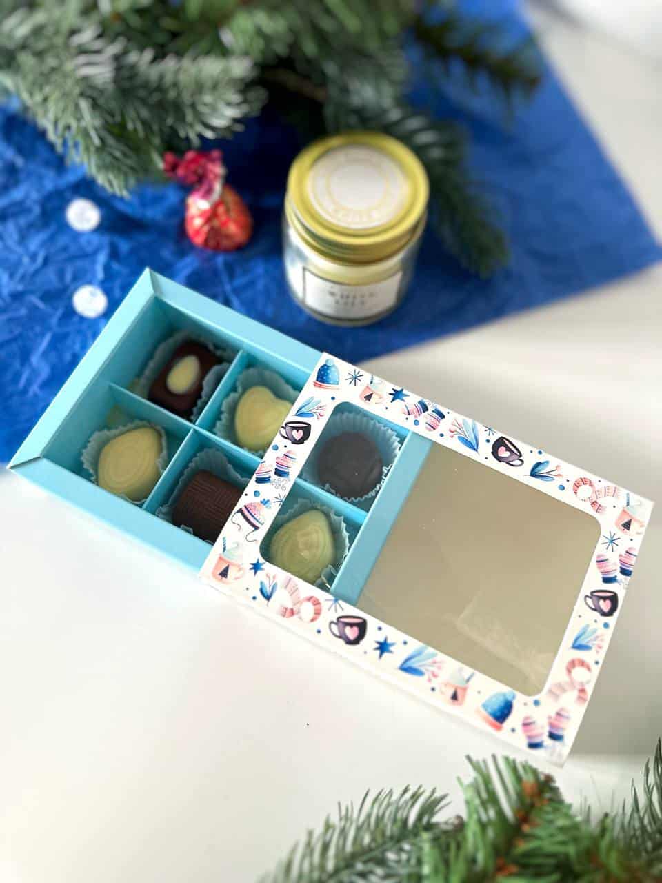 Новогодняя коробка с обечайкой - коробка пенал на 6 конфеты с внутренними разделителями. Подходит для пряников, мармелада и иных сладких презентов. Может быть использована для размещения изделий ручной работы