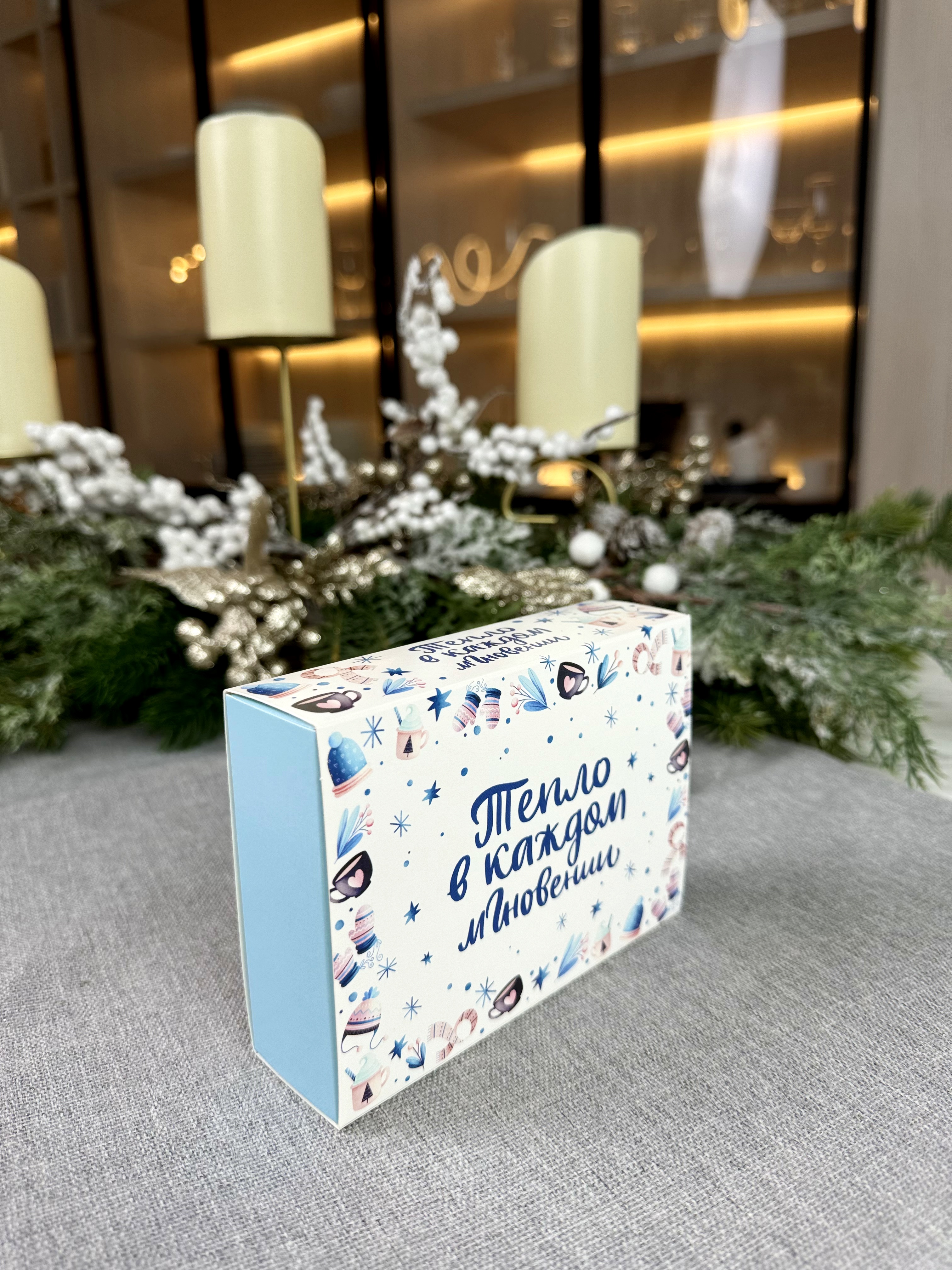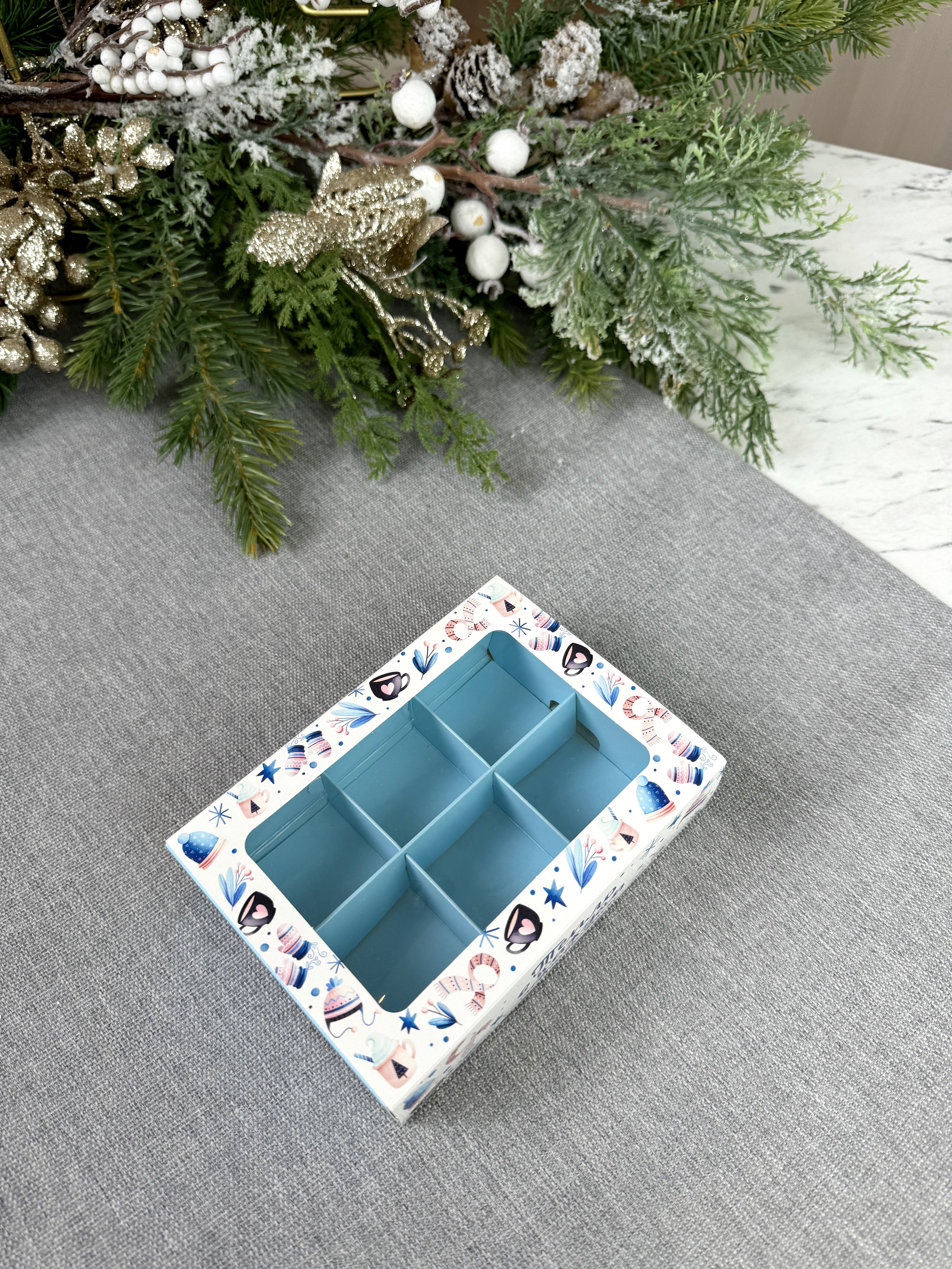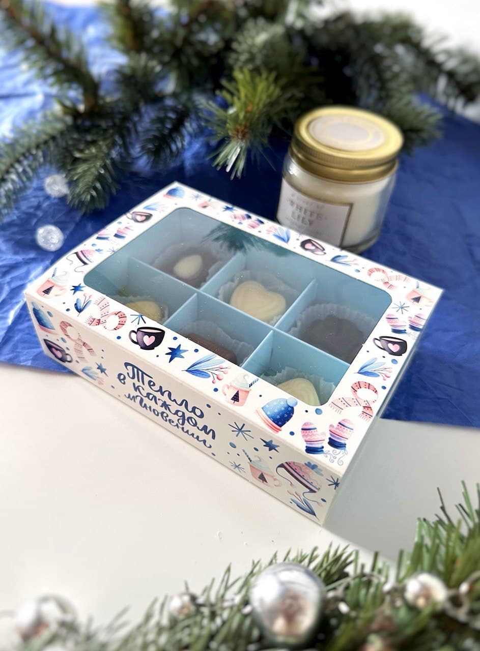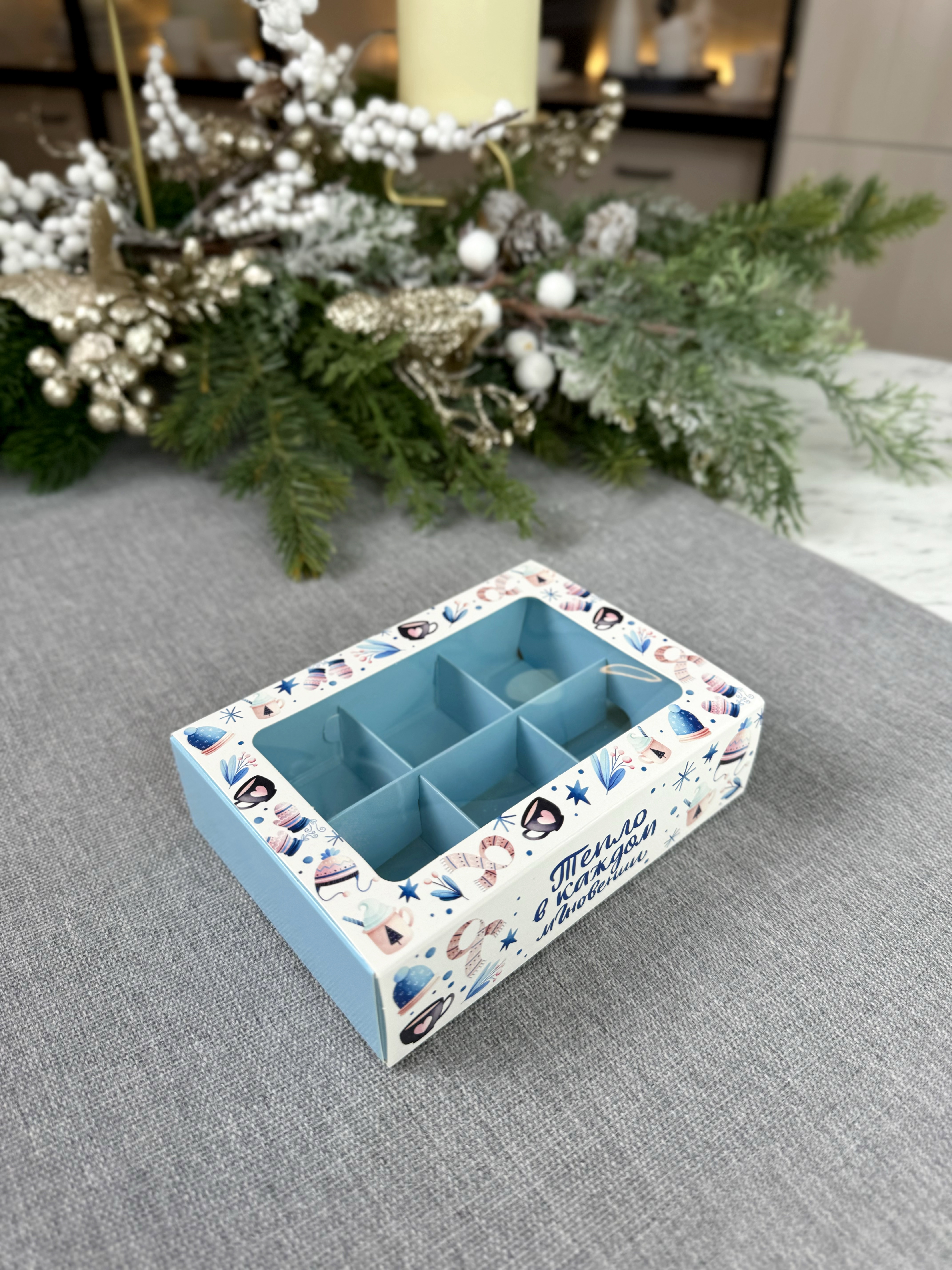 Коробка с окном под 6 конфет Теплый праздник, 137х98х38 мм (дно и обечайка)