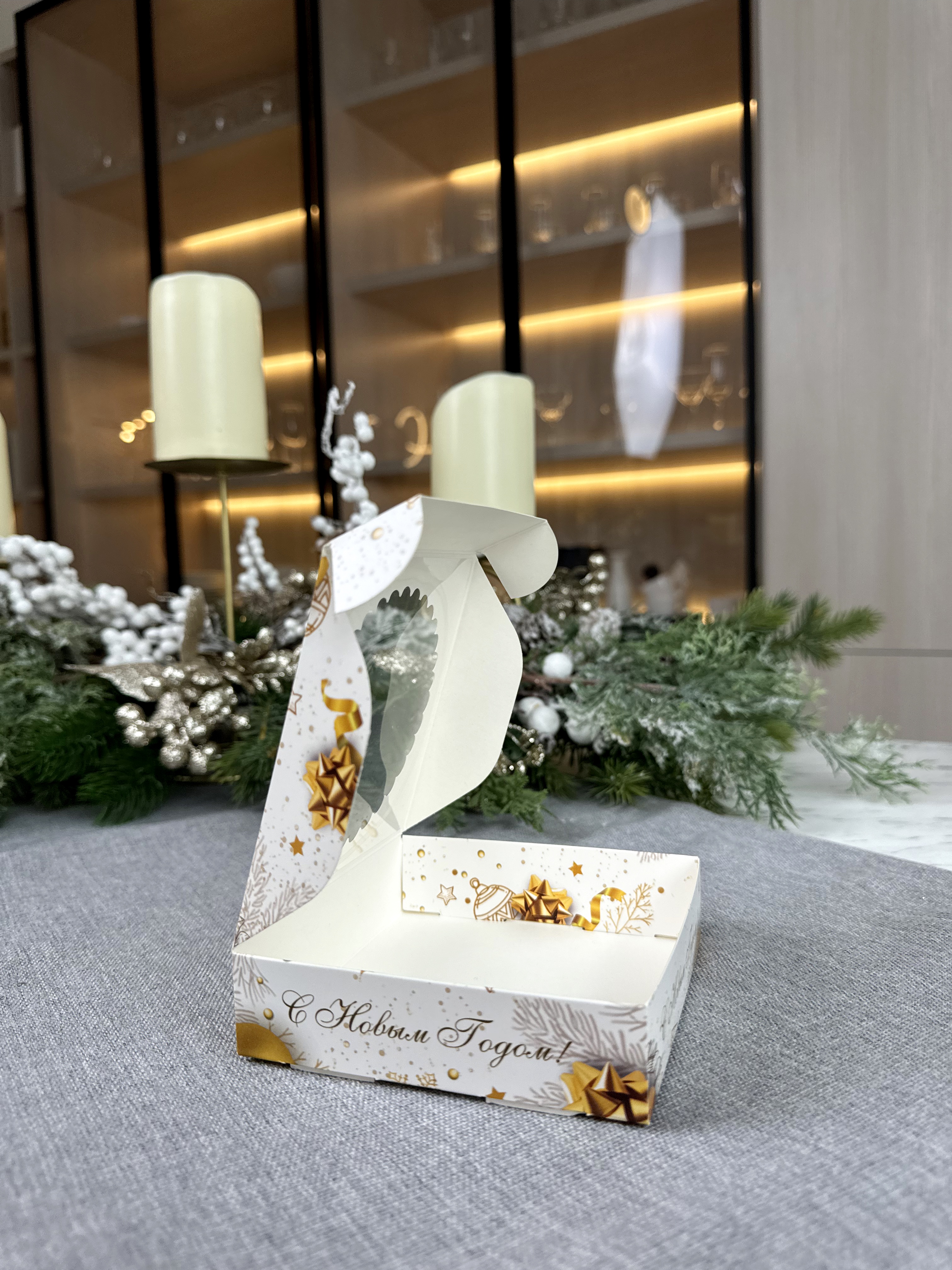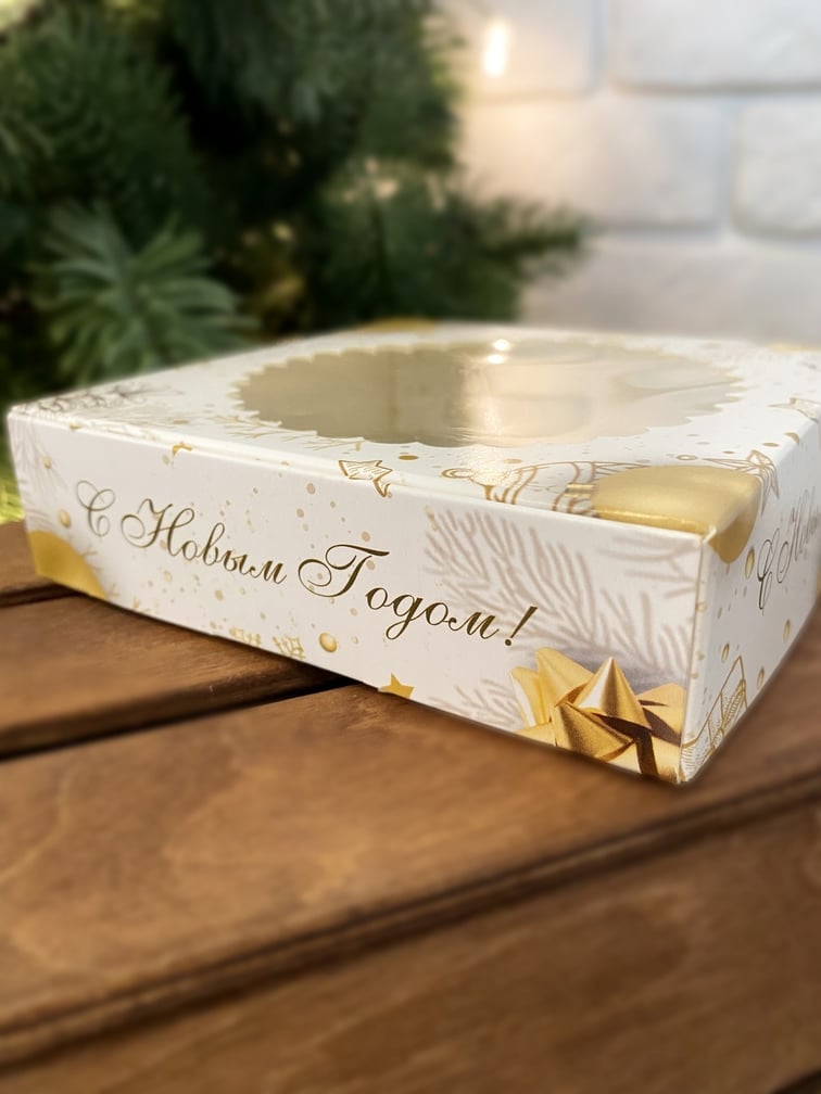 Коробка под печенье/пряник/мармелад/пончик Золотой Новый Год, 115*115*30 мм