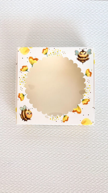 Кондитерская упаковка. Подходит для размещения пончиков, тартов, печенья, пряников, мармелада, шоколада и иных сладких презентов. Может быть использована в качестве универсальной упаковки для размещения изделий ручной работы