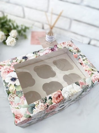 Упаковка под 6 капкейков с окном «Цветочки»