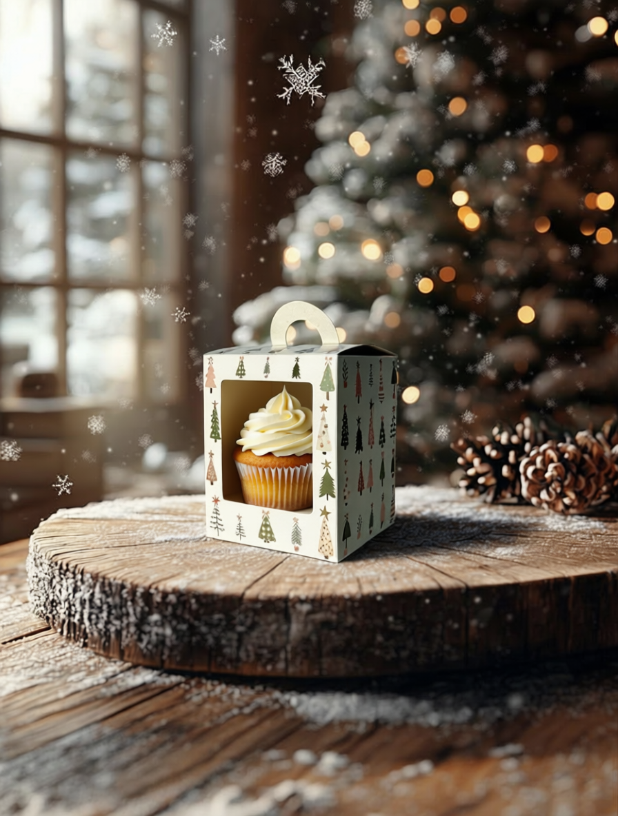 Коробка с окном под 1 капкейк/маффин/пирожное с окном Ёлочки, 92х92х111