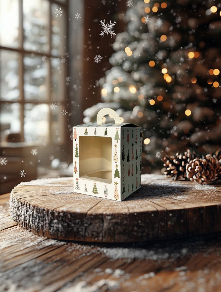 Коробка с окном под 1 капкейк/маффин/пирожное с окном Ёлочки, 92х92х111