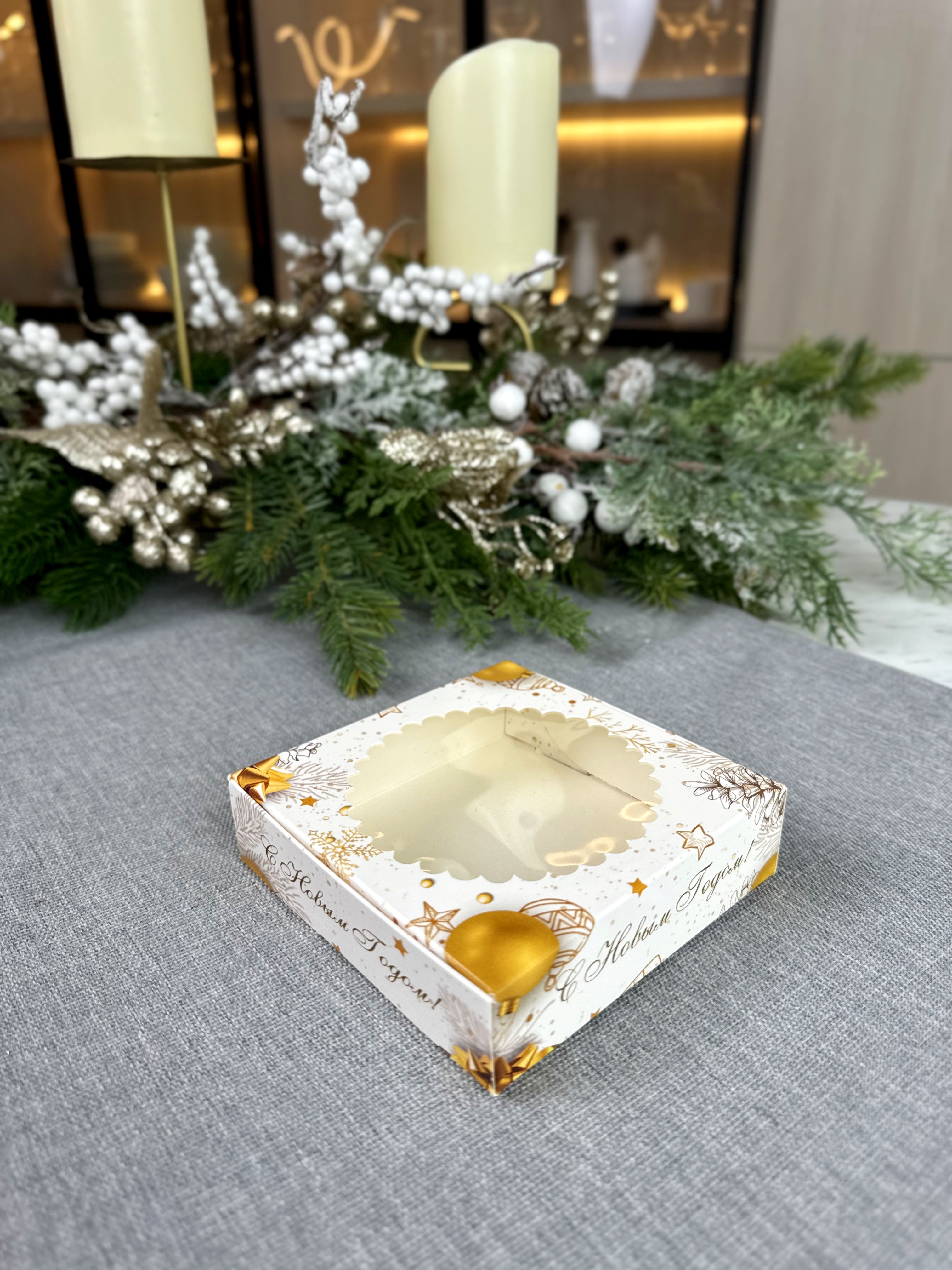 Коробка под печенье/пряник/мармелад/пончик Золотой Новый Год, 115*115*30 мм